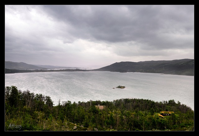 Es geht bombastisch gut vorwärts, bis dann ein Traktor vor uns herfährt. 50 Km/h und er hat einen Bagger auf einem Anhänger. Überholen is nich – es sind noch reichlich Autos dazwischen, das nervt total. Es ist jetzt fast 20h und es wird langsam dunkel. Wir halten an einer Tankstelle, die Tanknadel bewegt sich langsam auf die Reserve zu. Die Tankstelle ist “unbewohnt” und ich habe wieder eine Auseinandersetzung mit dem Kreditkartenautomaten. Er spricht wieder nur norwegisch! Wie schön war das doch in den USA…