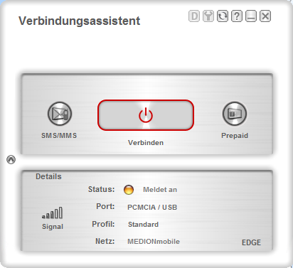 Nun steht da “Meldet an” – toll – geht das auch mal weg? Ich komme mir vor wie im Tal der Ahnungslosen – so müssen sich die wissbegierigen Menschen in der DDR gefühlt haben… Nach dem 10 oder 20. Versucht – diesmal ein USB-Port auf der Rechnerrückseite mit Verlängerungskabel – steht da “Verbunden” – nur womit verbunden? Ein ping nach www.google.de bleibt jedenfalls unbeantwortet.