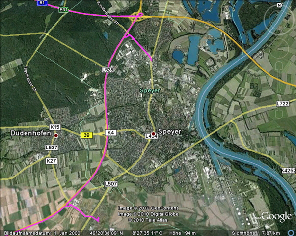 Schließlich schaffen wir es auf die B9 und da fließt dann alles ganz wunder bar. Bei Speyer ist bei Florian der Hunger unerträglich. Er überholt und wir biegen die nächste Ausfahrt ab. Kriegsrat, POI = Restaurant eingeben und los. Das Restaurant hat natürlich geschlossen, es ist 17h – Mist!! Zwei Tage zuvor habe ich mit die Liste der McDonalds-“Restaurants” auf mein neues TomTom geladen. Es sind nur ein paar wenige Kilometer bis dorthin. Es gibt verschiedene Varianten, ich wähle “POI auf Route”. Das klappt bestens, wir landen in Speyer bei McDonalds – super! Während wir essen überlegen wir, was unsere Frauen wohl dazu sagen würden. Igitt oder so 🙂 Florian ist total kaputt. Die 12 Stunden des Vortages stecken ihm in den Knochen. Er ist etliche Stunden länger gefahren als ich, schließlich hat er mich in Mainz aufgesammelt! Er würde gern in Speyer bleiben. Aber wir haben meine Sandra schon gebeten in Bonn ein Hotelzimmer zu buchen. Noch am gleichen Tag ins Münsterland zu fahren scheint uns unmöglich.