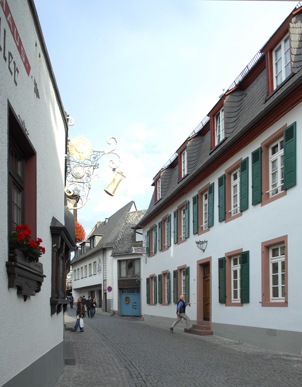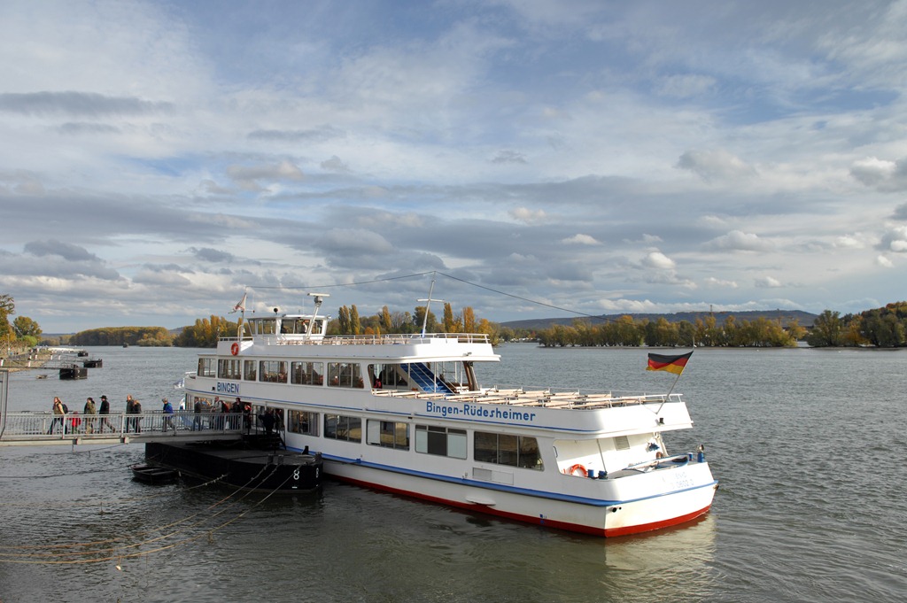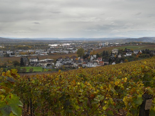 Es geht in Richtung Bingen und dann rechts ab auf die andere Seite des Rheins. Dann in Richtung Rüdesheim. Am Himmel hängt Hochnebel, es ist wirklich garstig, kein Wetter für eine entspannte Mopedtour – jedenfalls noch nicht!