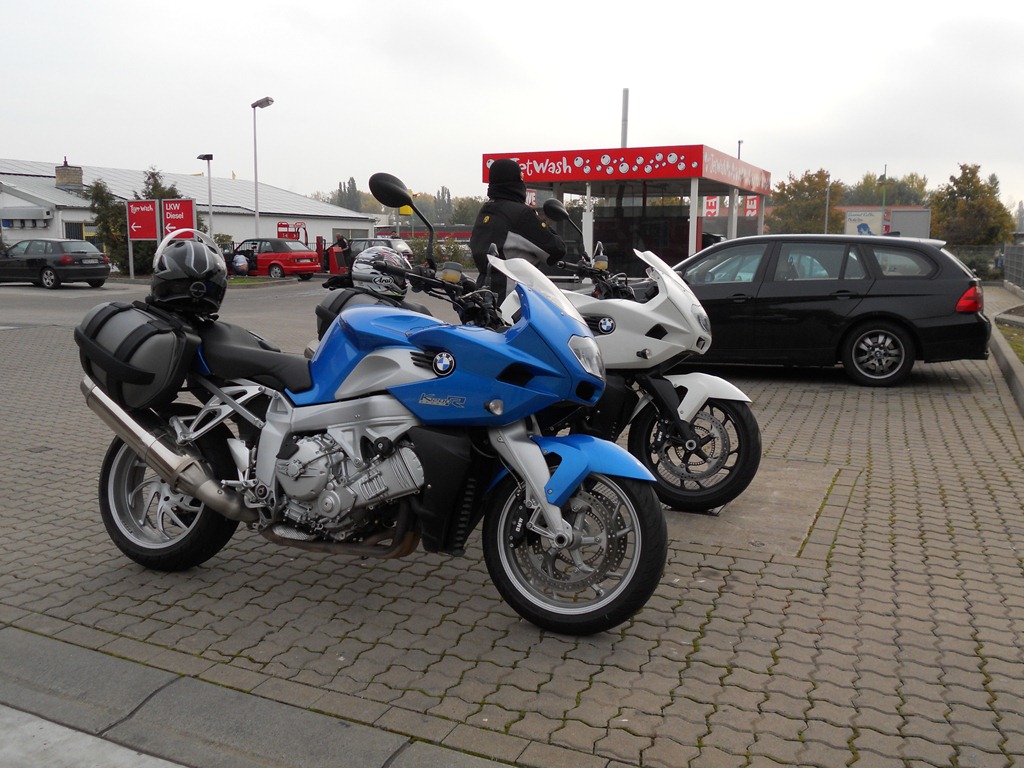 Bei Rüdesheim steuern wir die Tanke an bei der ich Neulich schon zusammen mit Hauke einen Regenschauer abgewartet habe. Sandra bestellt sich einen Kakao, der würde Hauke auch schmecken! Ich wärme mir die klammen Finder daran. Nach einer halben Stunde geht es weiter. Vorher ziehe ich mir die etwas dickeren GoreTex Handschuhe über. Sie waren nach der Regenschlacht mit dem großen Bruder (der Augenoptiker) von vor ein paar Wochen ziemlich mit genommen. Um nicht zu sagen “verschimmelt”… Aber viel heißes Wasser und Waschmittel haben sie gerettet. Nun bin ich froh, dass ich sie dabei habe. Sie sind definitiv wärmer als die Handschuhe die ich mir für die Schwarzwaldtour mit dem großen Brüderchen gekauft habe.