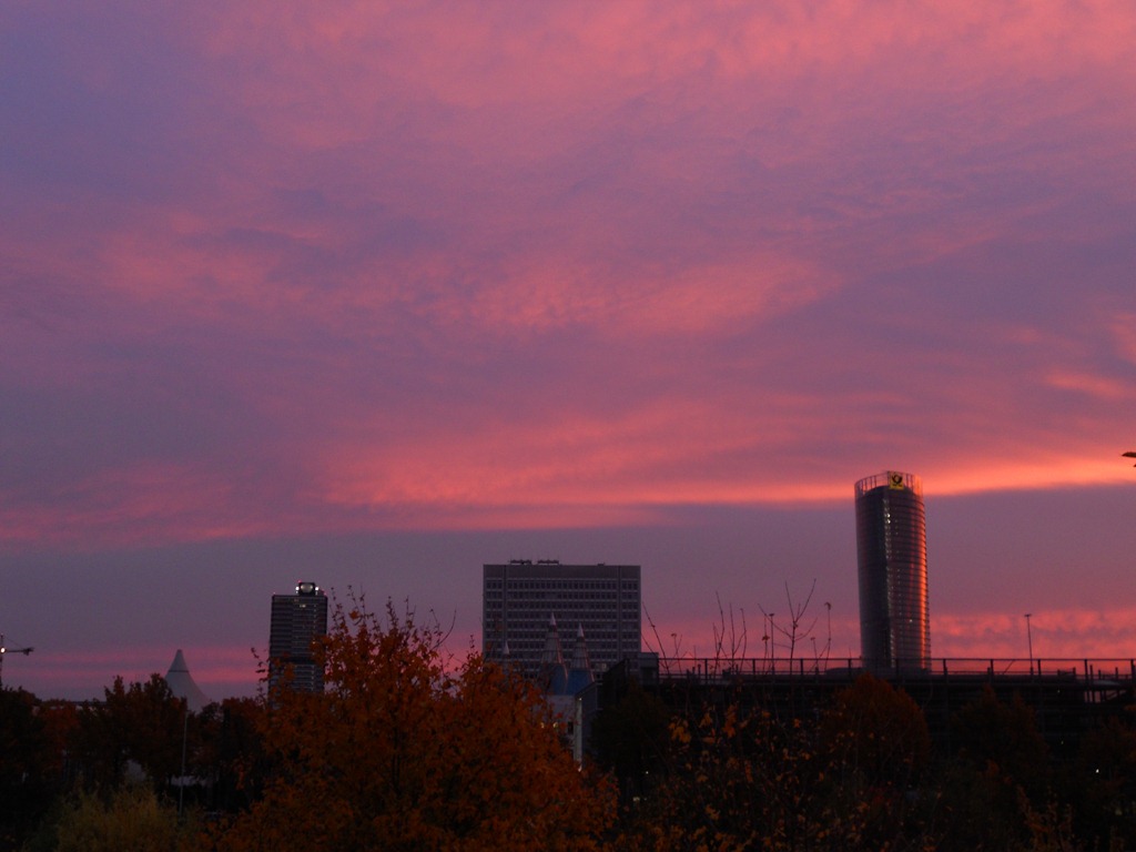 Als ich wach werde ist es 7h30, draußen über Museumsmeile zeigt sich ein Morgenhimmel von seiner schönsten Seite. Ab unter die Dusche, ein Bahnticket online buchen und dann ab zum Bonner Hauptbahnhof. 10h14 sitzen wir im Bistro des ICE nach Süden. Es gibt zwei mal das Gourmet-Frühstück mit Kaffee und Rührei – genial! Verglichen mit dem besten Frühstück der Welt im Quartier 65 ist es kein Vergleich, aber der Industriekäse schmeckt mir dennoch und das Ei ist mit Liebe zubereitet – jedenfalls bilde ich mir das ein 🙂