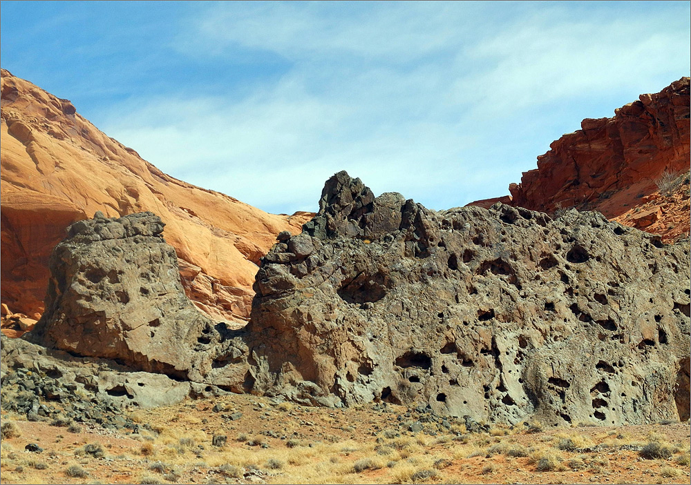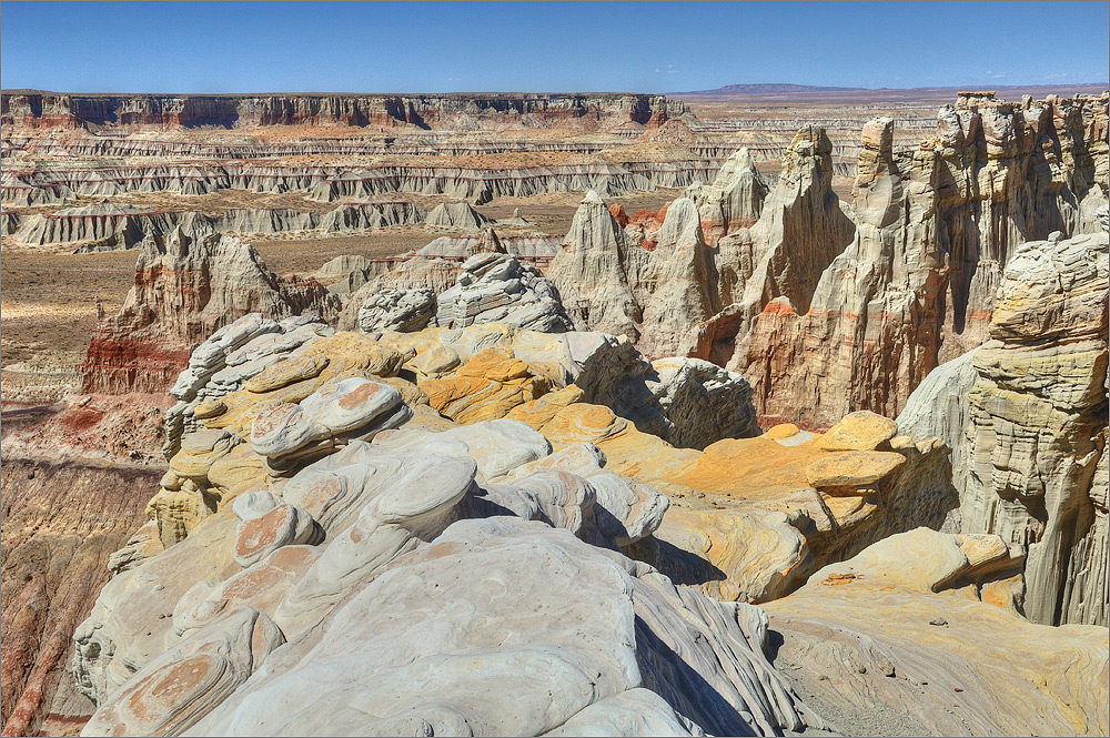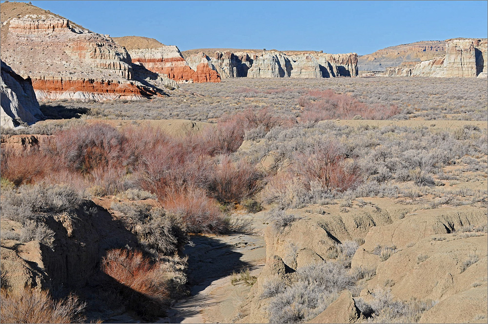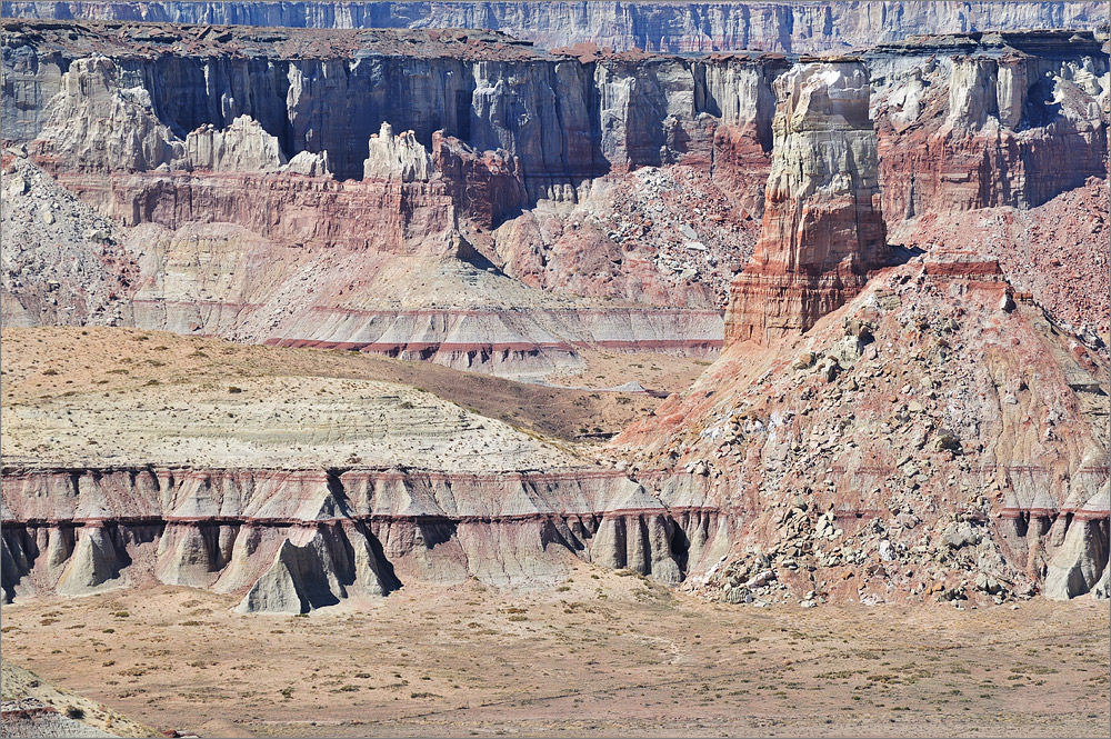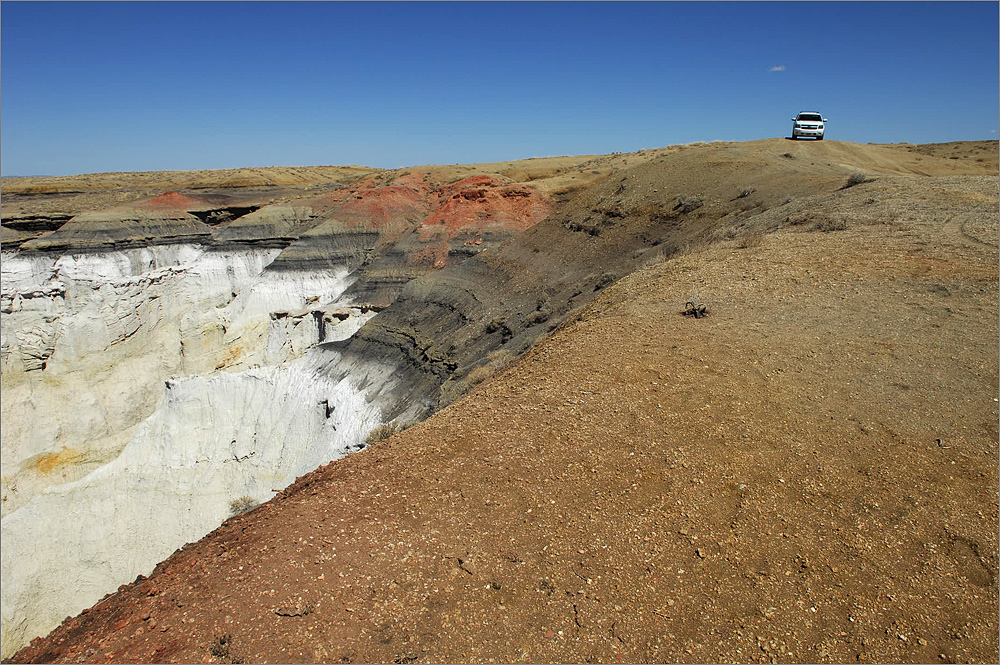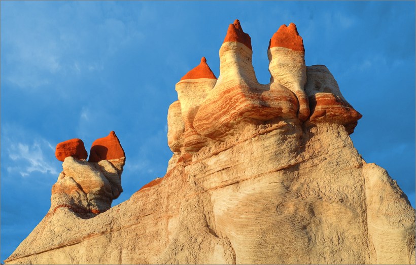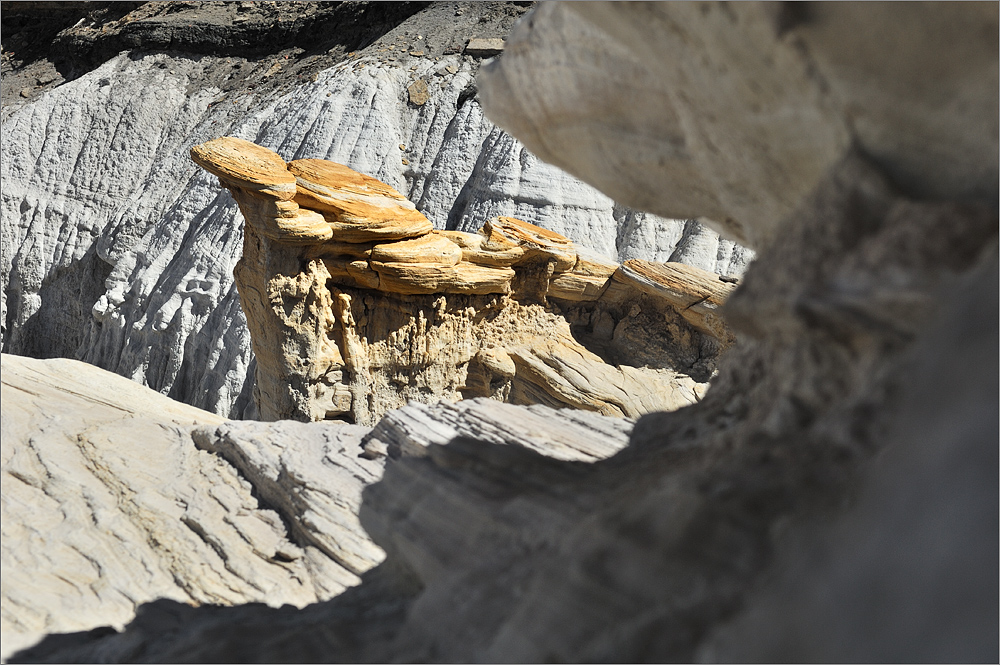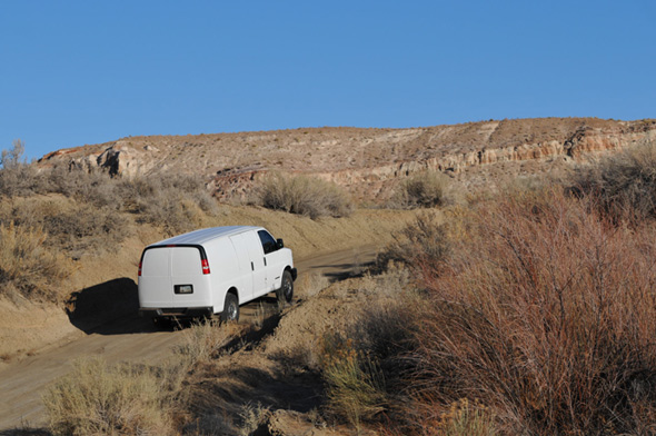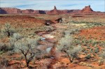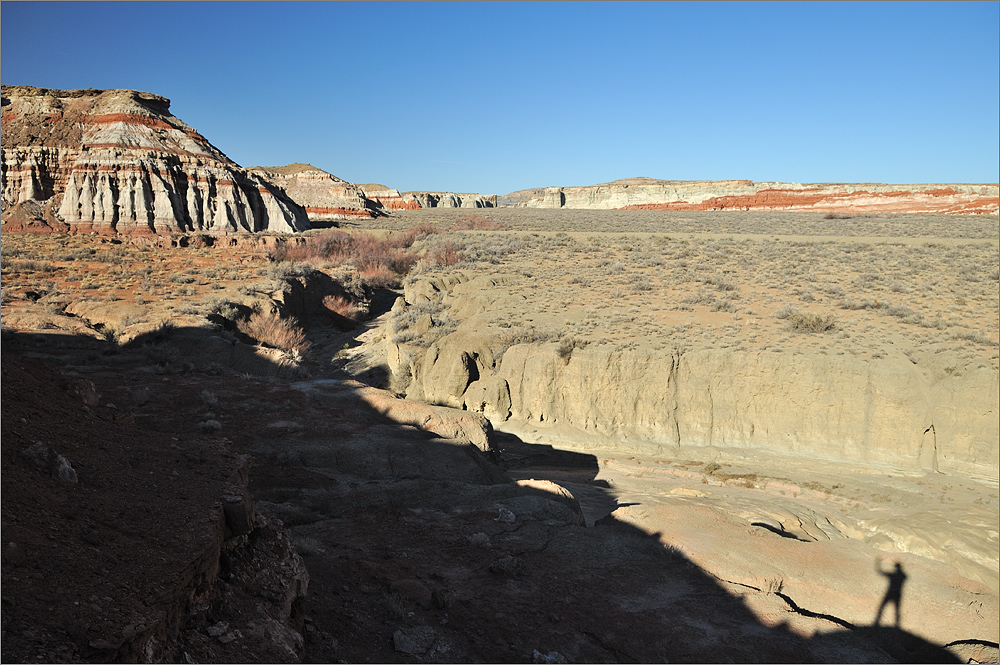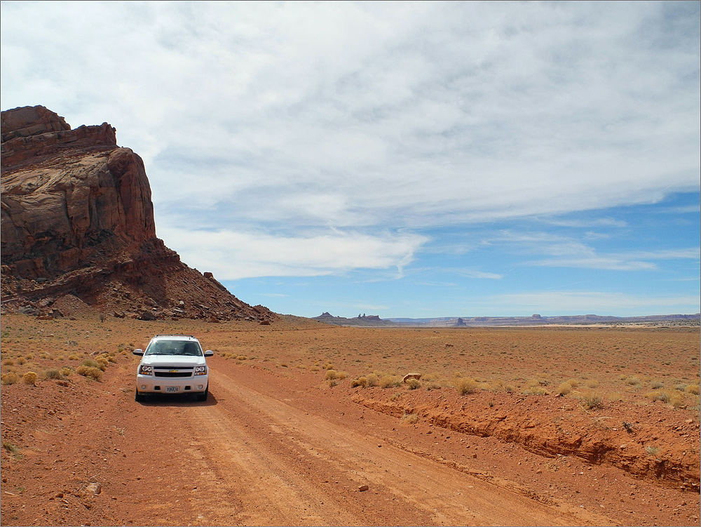 Wieder am Auto geht es noch einmal zum Blue Canyon, obwohl ich gestern schon dort war. Das Areal ist faszinierend und ich möchte es noch ein wenig erkunden. Als ich fast bei den „Five Padres“ bin biege ich aber nach links ab und fahre in Richtung Norden. Das macht Spaß und es gibt viel zu sehen. Irgendwann bin ich am Wegpunkt BC3 – den habe ich noch aus dem Jahr 2009. Wolfgang hat mir damals eine tolle Mail mit vielen Wegpunkten zugeschickt. Am BC3 hat man einen wirklich tollen Überblick auf weite Teile dieses tollen Gebietes. Inzwischen ist es fast 16h und das Licht wird langsam „fotogener“. Ich wende und fahre langsam zurück. Bei einem Zwischenstopp kommt dann eine ältere Indianerin in einem weißen Allrad-Van vorbei. Das einzige Auto das ich hier den gesamten Tag über sehen werde!