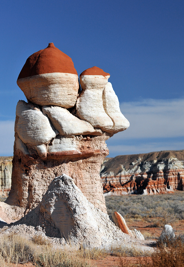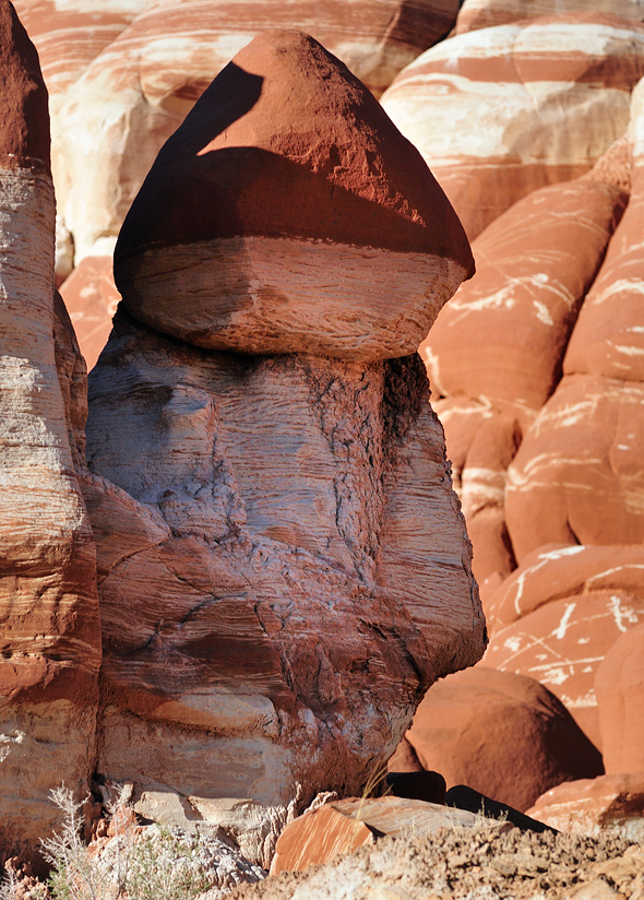 Ich fahre ganz langsam mit vielen Stopps am Rand dieses wunderbaren Canyons vorbei. Alle paar Meter muss ich halten und die kleinen Männchen mit ihren rotbraunen Zipfelmützen fotografieren. Der Tahoe macht mich indes fast wahnsinnig. Ständig macht es „Bing Bing Bing Bing Bing“. Mit Microsoft’s Bing hat das nix zu tun, es ist einfach nur nervig. Diese oder jene Türe ist offen, die Bremse ist getreten, der Schlüssel steckt, Licht ist an, Bing Bing Bing – wir mir das auf den Keks geht. Sandra hat neulich schon gesagt, dass sie bei ihrem nächsten Auto dieses „Gebimmel“ irgendwie abschalten würde und dass sie manchmal fast froh ist einen alten Opel zufahren der nicht ständig piepst und bimmelt.