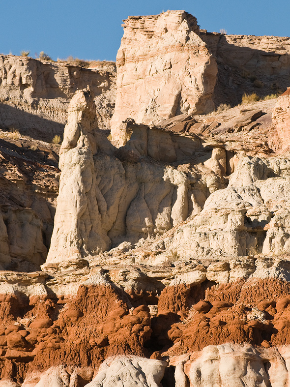 So geht es weiter, von Klippe zu Klippe arbeite ich mich langsam nach Norden vor. Ich bin auf einer „Landzunge“ – links und rechts geht es wirklich atemberaubend weit in die Tiefe. Bei letzten Stopp klettere ich auf einen kleinen Vorsprung, was für eine Aussicht. Auf dem Rückweg rutsche ich dann am steilen Hang ein paarmal aus, nun bloß nix dummes machen und in den Canyon stürzen! Auf allen Vieren geht es den Hang hinauf. Die D2x habe ich so halb auf dem Rücken. Als ich am Auto ankomme fehlt mal wieder das Gummi des Vergrößerungsokulars (Nikon DK-17) – schon wieder, immer wenn ich eine Nikon seitlich am Körper trage und ein Stück laufe geht mir dieses blöde Gummi flöten. Bei der D300 ist das „Eye-Piece“ auch schon weg. Dort habe ich derzeit das Gummi meiner D60 drauf geschoben, das passt ganz gut und ist sogar besser gepolstert als das der D300. Ok, wenn ich daheim bin schaue ich mal wo es multiplen Ersatz für die Dinger gibt.