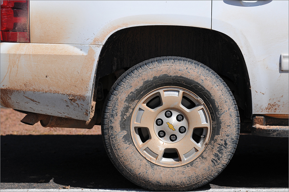 Hier sieht man ganz gut wie tief die Reifen im Schlamm gesteckt haben: