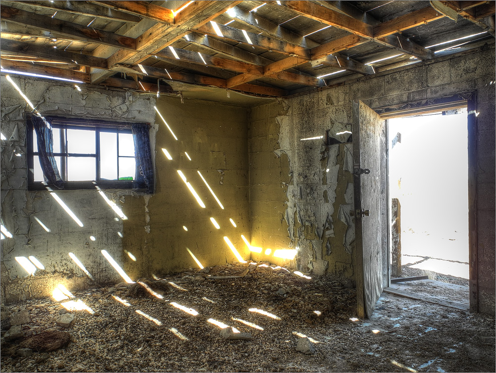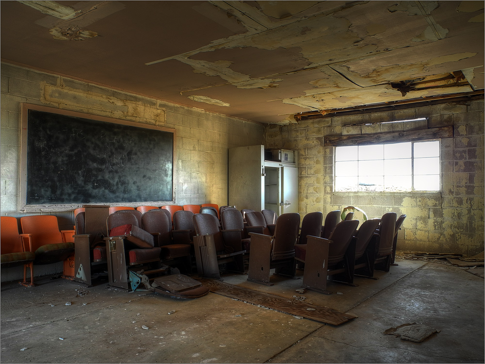 Irgendwann erscheint mir die sandige schmale Dirt-Road nicht mehr zielführend. Ich wende den Tahoe und es geht zurück zur Hauptstraße. Dort angekommen wird kurz überlegt wie es weitergehen soll. Ich blinke links und fahre noch ein mal nach Coalmine Mesa. Dort erkunde ich die kleine Geisterstadt mit meiner P7000 auf meinem kleinen Reisestativ. Es gibt ein altes Kino, zwei Schulen, einen verlassenen Basketballplatz, einen Maschinenhaus. Hier haben wirklich mal Menschen gelebt! Inzwischen ist alles recht verfallen. Aber ich mag ja so marode Orte sehr gern. Wenn man jetzt nur ein Model dabei hätte, hier könnte man echt ne Menge cooler Aktfotos knipsen!