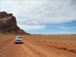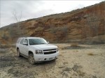 Als ich etwa auf der Höhe von „Merlins Zipfelmütze bin“ (Auch ein Fatali-Motiv) schaue ich so fasziniert auf den Canyon, dass ich gar nicht bemerke, dass mein Tahoe langsam aber sicher in ein großen Feld mit tiefem Matsch hinein rollt. Als ich es bemerke ist es fast zu spät. Ein beherzter Tripp auf das Gaspedal, die Räder drehen durch, das Auto schlingert von links nach rechts, die ESP-Lampe blinkt, Kieselsteine prasseln von innen gegen die Kotflügel, das Ding schaukelt, der Motor dröhnt… Mir bricht der Schweiß aus, aber es geht alles gut. Uff, das war knapp!