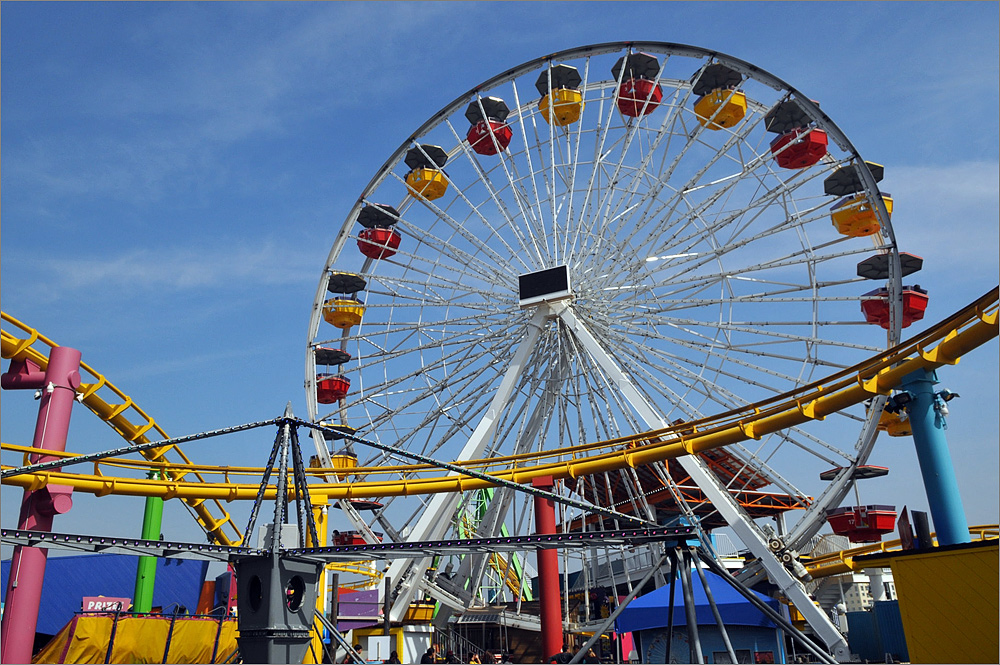 Als oder Chip dann sauber ist, geht es gegen Mittag wieder in Richtung Santa Monica Pier. Wir parken wieder auf dem großen Parkplatz, der ist bewacht und wir haben dabei einfach ein besseres Gefühl. Auf dem Pier ist viel los, aber es gibt auch einige Fahrgeschäfte die geschlossen sind, es ist eben Winterzeit! Trotzdem ist es wunderbar warm und wirklich angenehm. Auch wenn das Thermometer nur 15°C anzeigt, in der Sonne fühlt es sich an wie 25°C – es ist fast wie auf Teneriffa, ein wenig komme ich mir vor wie in Santa Cruz de Tenerife. Nur verstehe ich die Sprache hier besser und es gibt viel mehr teure Luxusautos.