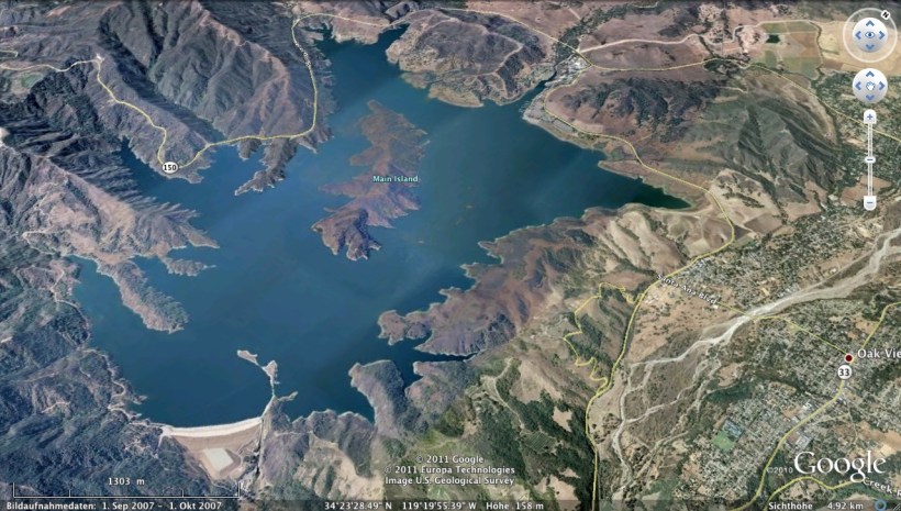 Der größere der beiden Seen heißt Lake Casitas und liegt westlich von Oak-View. Zumindest via Google-Earth sieht er ganz ansprechend aus…