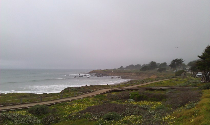Nach dem Frühstück mache ich dann draußen noch ein paar Aufnahmen mit dem HTC Telefon. Das Zimmer müssen wir um 11h räumen, danach soll es am Cabrillo Highway, so heißt hier der Highway No. 1, weiter in Richtung Norden gehen. Leider ist das Wetter nicht so berühmt, man kann vom Meer vielleicht die ersten 100 Meter sehen, danach gibt es nur noch Graupensuppe. In San Francisco soll es heute regnen, also schauen wir mal wie wir unsere Planung so hin biegen, dass wir diese schöne Stadt bei Sonnenschein erleben können.