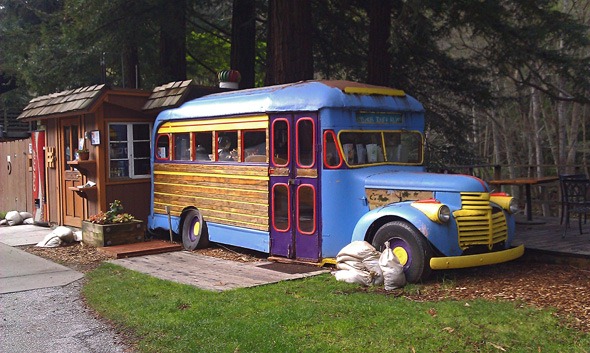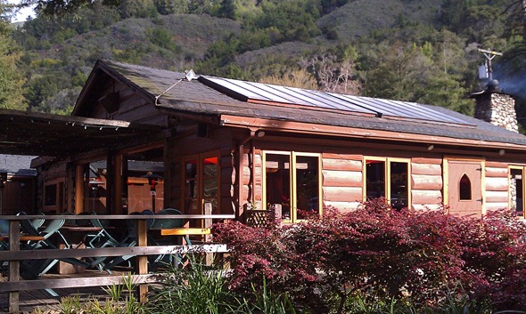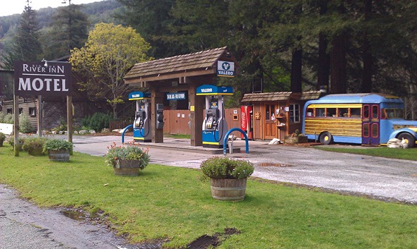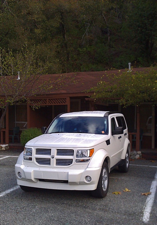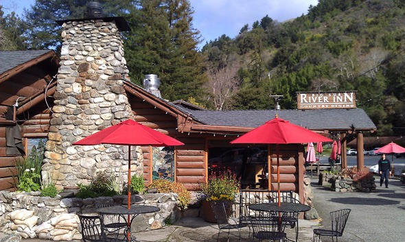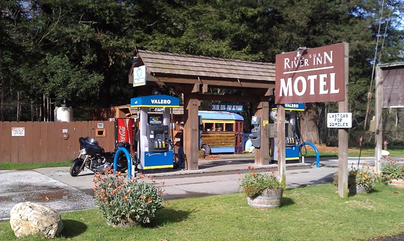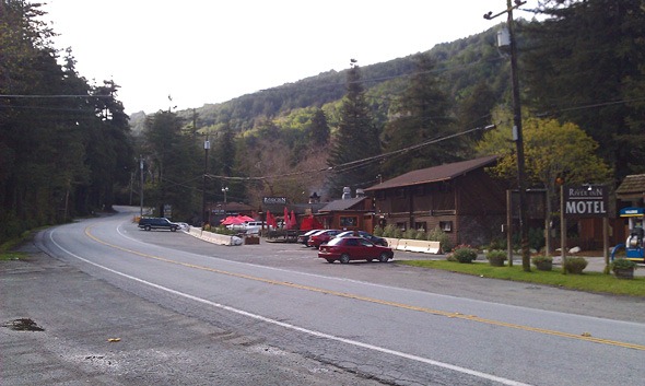 Nach einem Plausch mit der Verkäuferin unten in der Galerie geht es dann im strömenden Regen weiter. Als wir kurz darauf Big Sur erreichen haben wir beide eigentlich keine Lust mehr noch weiter diese wunderbare Strecke im Regen zu “verschwenden”. Am Riverside Inn Motel halten wir mal an und es ist sogar ein Zimmer frei. Das kostet 85$ plus Steuern. Nebenan ist ein Restaurant und nachdem das Auto mal wieder ausgeladen ist gibt es dort einen leckeren Hamburger, was auch sonst. Ok, es geht auch anders, Sandra bestellt sich ein Art Hotdog-Brötchen mit gegrilltem Lachs, das sieht wirklich gesund aus! Im Restaurant gibt es ein offenes WLAN, das ist hier alles ganz praktisch. Später drüben in unserem kleinen Holzhäuschen haben wir dann aber keinen Empfang. Also BLOGGEN wir mal ins Blaue hinein, vielleicht gehen wir ja später noch auf ein Bierchen rüber und nehmen unsere Notebooks mit.