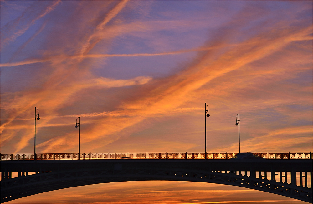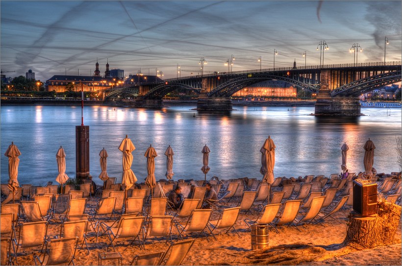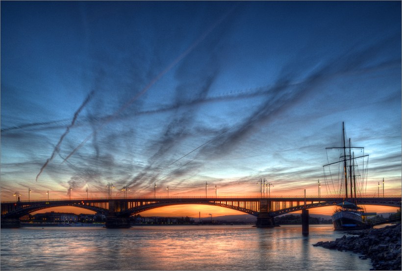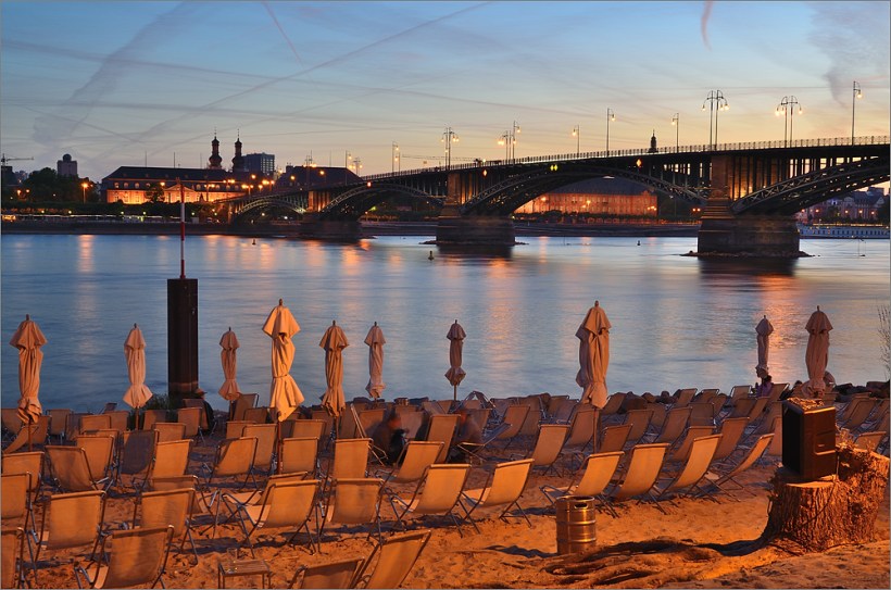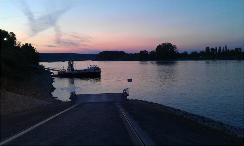 Es geht über B9 nach Nierstein, dann in Richtung Süd-Westen. Das Thermometer zeigt 30°C – es ist krachig warm, da tut der Fahrtwind richtig gut. Schräg vor mit bahnt sich ein traumhafter Sonnenuntergang an. Zwischendurch halte ich kurz mal an und nehme mit dem Handy ein paar kurze Video-Sequenzen auf. Das Thermometer zeigt nun entspannte 25°C, ich genieße die Landschaft in vollen Zügen. Es geht durch kleine Weindörfer rüber zum Rhein und wieder zurück nach Mainz. Unten am Rhein sind es dann wieder 28°C – hui – der Sommer ist da! In Mainz angekommen bin ich wieder ziemlich platt, was für ein schöner Tag.