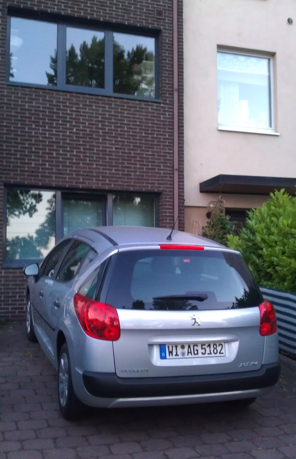 Am Wochenende gibt es in meiner Heimatstadt die Erstkommunion meiner kleinen Nichte. Dementsprechend fallen die kulinarischen Köstlichkeiten recht überschwänglich aus. Gegen 17h geht es mit Sandra und meinem Sohn wieder los. Erst bringen wir Sandra nach Hause, dann wird mein Sohn bei der Mama abgesetzt, anschließend geht es zu mir nach Haus. Dort werden schnell ein paar Anziehsachen zusammen gepackt und um 20h30 bin ich dann unterwegs auf der blauen BMW in Richtung Süden. Es geht nach Mainz. Noch 50 Minuten, dann wird es dunkel, vor mir liegen etwa 150 Kilometer. Der Bordcomputer zeigt eine „Restlaufzeit“ von 289 Kilometern an, das sollte reichen. Dort wo es geht gebe ich auf der Autobahn kräftig Gas. Die Nadel tanzt zwischen 180 und 230 Km/h. Ohne Gehörschutz wäre da nichts zu machen! Nach etwa 70 Kilometern sind von den ursprünglich errechneten 289 Kilometern nur noch etwa 70 Kilometer übrig, das könnte wirklich eng werden. Fährt man nicht im „Schleichgang“ durch die Gegend, so steigt der Spritverbrauch von ca. 5 Liter auf knapp 9 Liter/100 Km!! Also muss ich doch noch tanken. An der Tankstelle muss ich dringend die vielen toten Fliegen vom meinem Visier waschen. Als ich bezahlt habe und wieder startklar bin, ist die Sonne untergegangen.