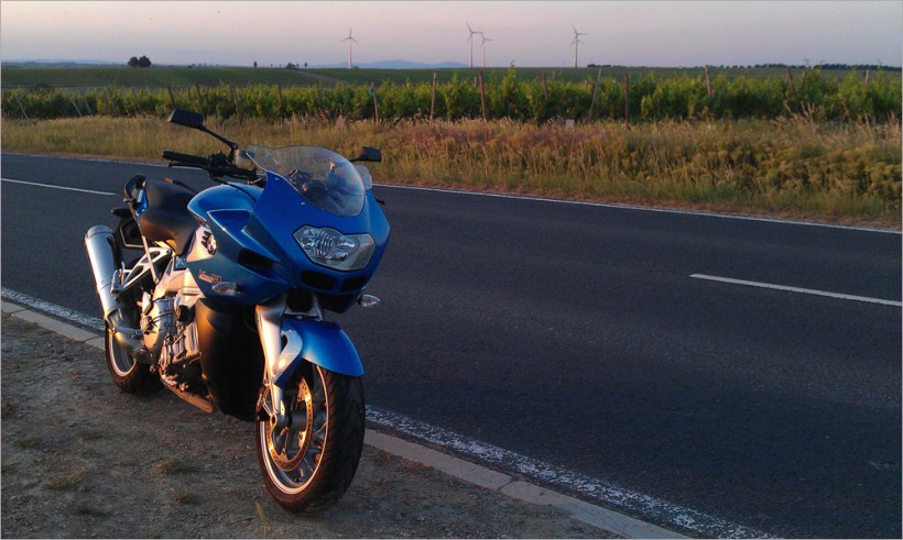 Das neue Visier passt dann auch besser und es zieht hoffentlich nicht mehr so doll in den Helm. Ich kaufe mir noch ein Reinigungsspray für die Innenpolster, inzwischen ist das wirklich mal wieder nötig. Vor dem Verlassen des Ladens fallen mir dann noch zwei Spiegel auf. Sie kosten 39 Euro pro Stück und sind deutlich kleiner und windschnittiger als die großen „Fliegenklatschen“ an meiner K1200. Gesehen, gekauft. Weil ich kein Werkzeug habe, nehme ich gleich noch ein paar Schraubenschlüssel mit, davon kann man(n) eh nie genug haben 🙂 Vor der Montage gibt es an der ESSO Tankstelle gegenüber von Louis noch schnell einen Hotdog und einen Muffin. Dann werden die Spiegel montiert. Gut sieht das aus, da muss man doch gleich eine kleine Tour machen 🙂 Gesagt getan, rein in die Klamotten und rauf auf den „Bock“.