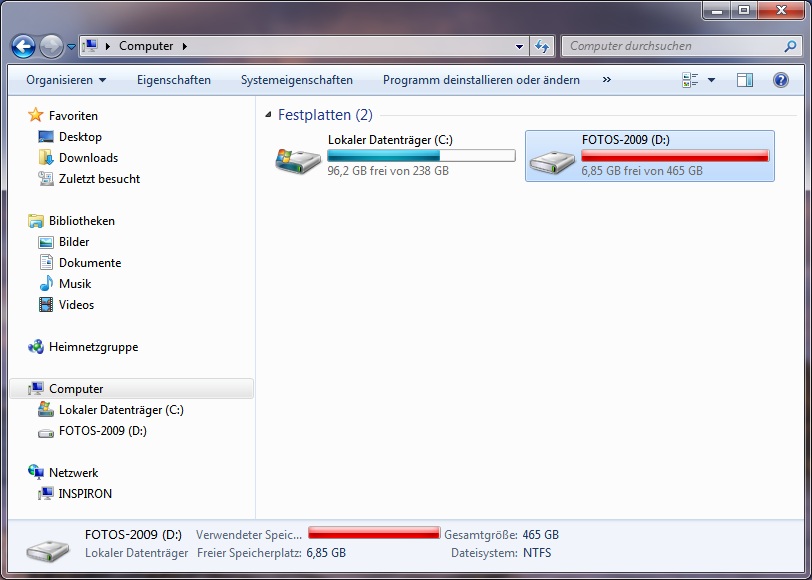 Die Frisch eingebaute Festplatte ist auch schon wieder fast voll. Die GoPro Videos machen mich einfach nur fertig. Aber es ist da auch vieles was man nach der Video-Bearbeitung wird löschen können. Aber dennoch, die zweite Platte macht sich hier ganz gut! Irgendwann werden die vielen Fotos mal auf mein SAN (Storage-Area-Network) verschoben, das ich aber leider noch nicht habe 🙂 Aber das wird vielleicht eine neue Geschichte 😉