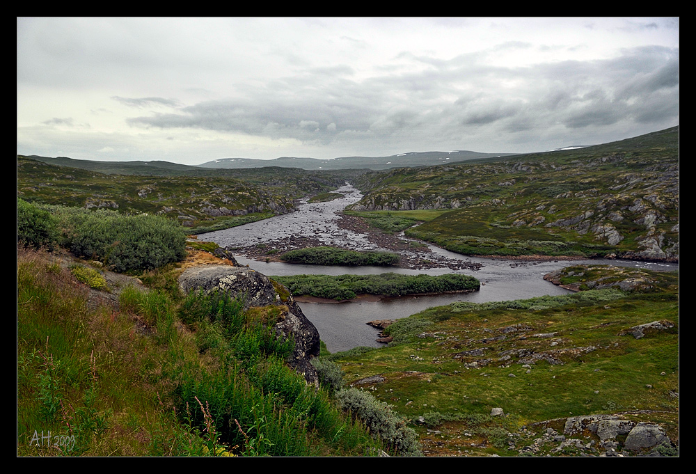 Richtig doll angetan hat es mit die „Hardangervidda“ – Europas größte Hochebene und der Quell der Energie für viele Norwegische Wasserkraftwerke. Das Wetter war stürmisch, es war selbst im Hochsommer kalt und feucht. Am Horizont konnten wir Schnee und kleine Gletscherzungen erkennen. Ein einziger Traum!