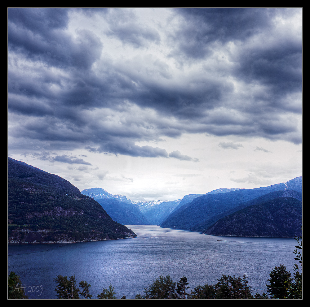 Auch hier erinnere ich mich mehr genau wann und wo es war, aber hier flossen zwei Fjorde ineinander und der Himmel sah einfach nur bedrohlich aus. Die besten Bilder macht man wirklich bei schlechtem Wetter!