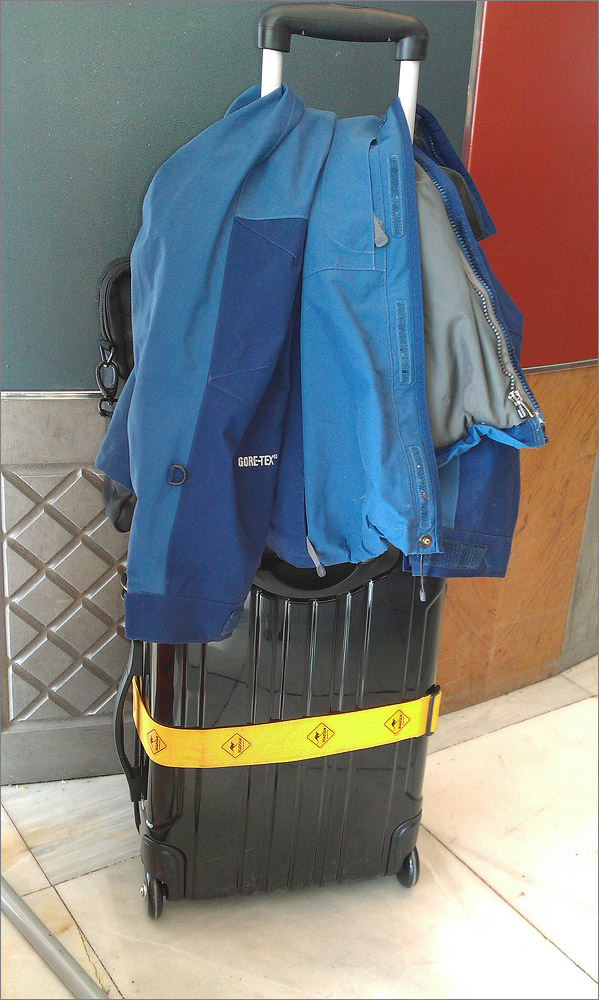 Hier ein Handy-Knipsbild meines „Handgepäcks“. In diesem Koffer sind etliche Objektive sowie die D700 und die D7000 – 16 Kilo wiegt der Spaß – ohne Laptop…