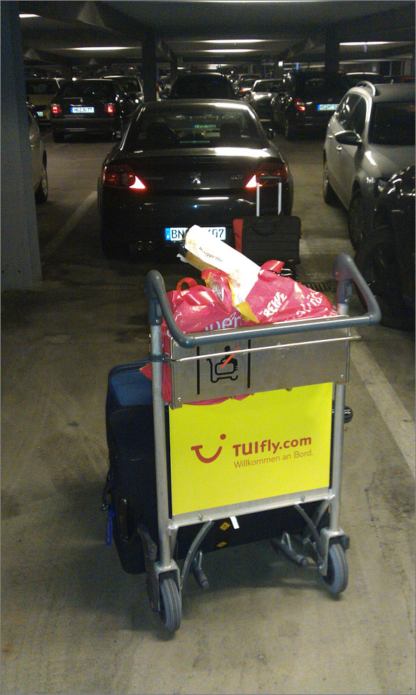 Die Ankunft in Köln ist auf die Minute genau pünktlich um 18h15, ich bin beeindruckt. Wie auf Teneriffa gibt es einen Bus-Shuttle zum alten Terminal. Dieses ist inzwischen komplett renoviert und man erkennt es kaum wieder. Unsere Koffer sind nach einige wenigen Minuten da, gleich nebenan gibt es für 1,- € einen Kofferwagen. Nun geht es los in Richtung P3, es ist ein Stück zu laufen und es tut nach dem langen Sitzen richtig gut. Kurz vor dem Übergang zu Terminal 1 ist auf der rechten Seite ein REWE-Markt. Ich passe kurz auf das Gepäck auf, Sandra geht schnell einkaufen. Was für ein toller Service, es ist Weihnachten und wir bekommen hier frisches Brot, Tomaten, Käse, Wurst, alles was das Herz begeht – super!