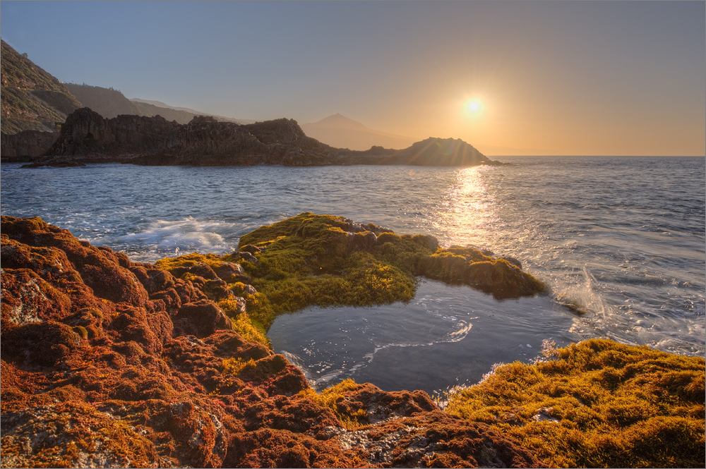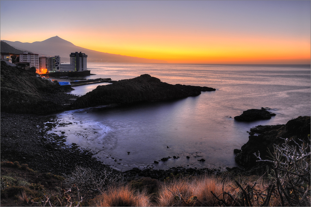 Hier noch einige erste Bilder der abendlichen Fotosession. Alle Bilder sind 1000 Pixel breit, also einfach anklicken, dann wird es deutlich größer. Alle Fotos sind mit der Nikon D700 und dem Nikon AF-S VR 4/16-35mm und einem B&W 8x Graufilter gemacht. Der Graufilter ermöglicht längere Belichtungszeiten, die Farben verändert er nicht wirklich. Der Berg im Hintergrund ist wieder einmal der Pico del Teide, Spaniens höchster Berggipfel!!