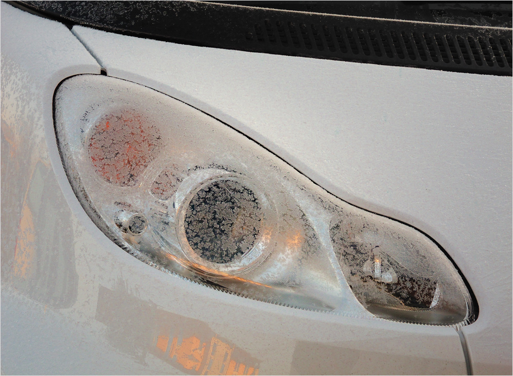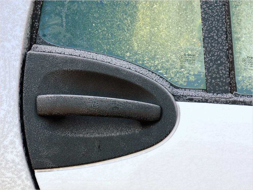 Am nächsten Morgen klingelt um 9h mein Telefon „Ihr Auto ist fertig!“ Prima, rein in die Klamotten und auf zur Werkstatt. Auf dem Weg zur Tür schnappe ich mir noch schnell meine Nikon P 7100. Unten vor dem Haus steht mein kleiner Smart. Er ist komplett eingefroren, es ist -10° kalt. Irgendwie sieht das aber gar nicht schlecht aus und ich starte einen kleinen Kältetest, für den Smart und für meine P7100.