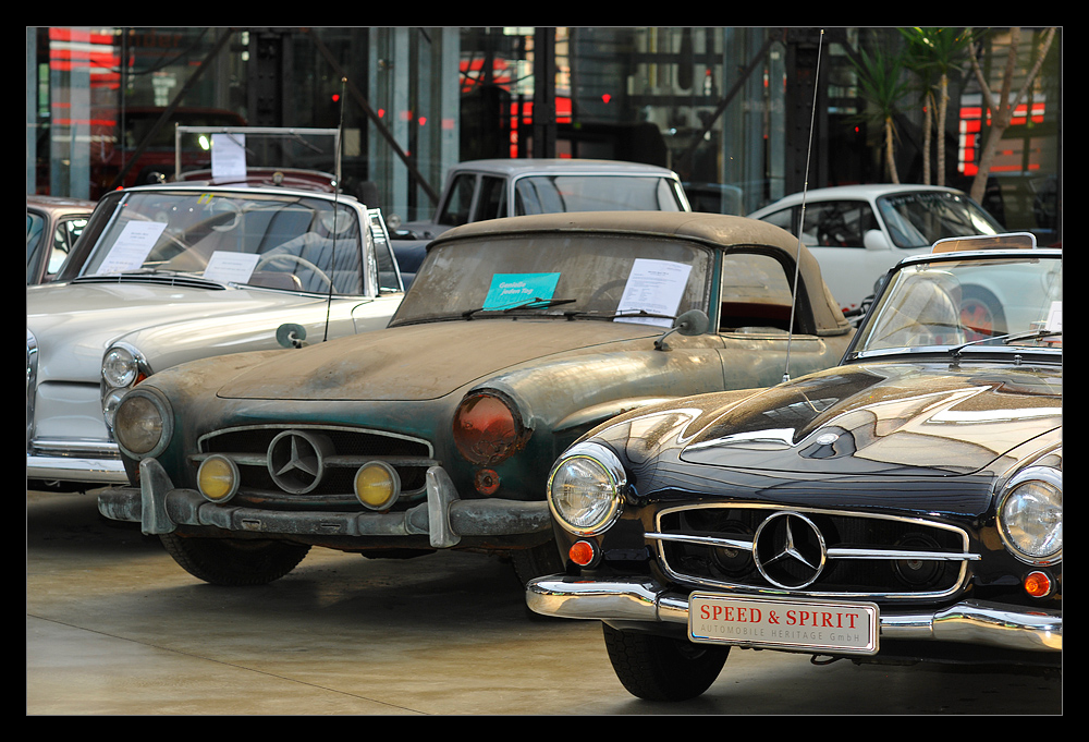 Es ist schon eine ganze Weile her, aber es war dennoch ein toller Tag als mich meine Freundin Sandra im August 2010 zu einem Überraschungsausflug nach Düsseldorf eingeladen hat. Ich wusste nicht was kommt und habe einfach mal die Nikon D300 samt AF-D 1.4/85mm und dem „kleinen Schwarzen“ AF-D 2.8/10,5mm sowie ein Nikon SB-900 Blitzlicht eingepackt. Ein stark reduziertes Equipment, aber nicht zuletzt seit meiner neuen Liebe zur Fuji X100 weiß ich „Less is more“. Also ging es bewaffnet mit nur zwei Objektiven auf nach Düsseldorf in ein altes Straßenbahn-Depot, das heute einen großartigen Oldtimer-Markt beherbergt.