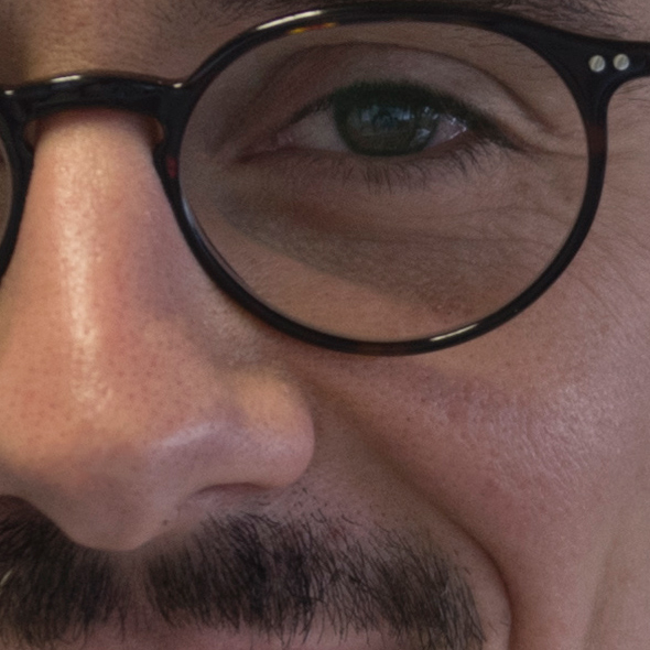 Schaut man genau hin so sieht man, dass die Nasenspitze nicht wirklich scharf ist, die Bartstoppeln und die Wimpern aber sehr deutlich abgebildet sind. Damit wären wir beim nächsten Aspekt der Portrait-Fotografie angekommen. Die Augen der Menschen sind oft der wesentliche Aspekt eines Portraitfotos. Die Augen sollten scharf abgebildet sein, aber wie man hier sieht, beträgt die Tiefenschärfe selbst bei der X100 mit voll geöffneter Blende nur wenige Zentimeter. Hier sind Erfahrung und Präzision die besten Helfer. Es ist oft auch hilfreich mehrere Fotos nacheinander zu machen. Zum einen „entkrampft“ sich das Modell, denn es tut ja gar „nicht weh“. Zum anderen steigt mit jedem Bild die Chance, dass die Schärfeebene perfekt dort liegt wo man sie haben möchte, auf den Augen.