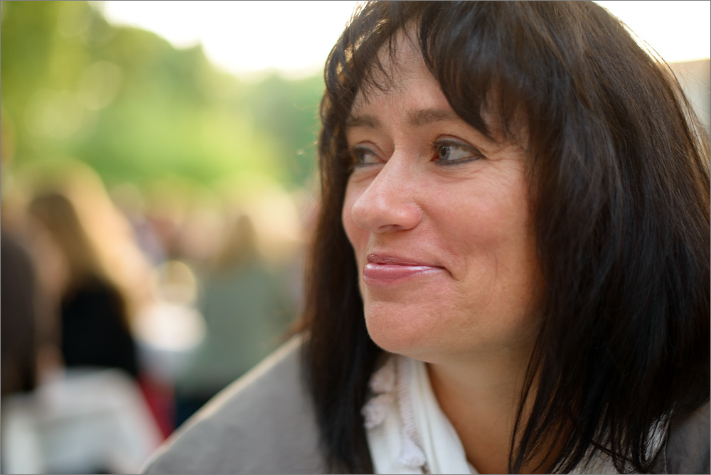 Hier nun ein sehr starker Ausschnitt bei ISO-800, Blende 2.8 und 1/400s. Das Bild ist nicht großartig aufbereitet, einfach nur Ausschnitt aus einem konvertierten RAW-Bild. Die Vordergrund- und Hintergrundunschärfe sieht sehr gut aus, die Dame ist scharf abgebildet und hebt sich sehr schön aus der umgebenden Szenerie heraus. So sollte es sein und das geht mit dem AF-S 1.4/50mm wirklich gut!