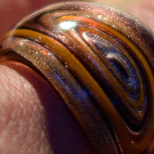 Hier habe ich ein weiteres Beispiel für das Spiel mit der offenen Blende. Diesmal haben wir Blende 1.8, ISO-400 und 1/20s. Auf den ersten Blick ist die rechte Kugel aus dem „Viererpack“ des Bildzentrums sehr schön scharf abgebildet.