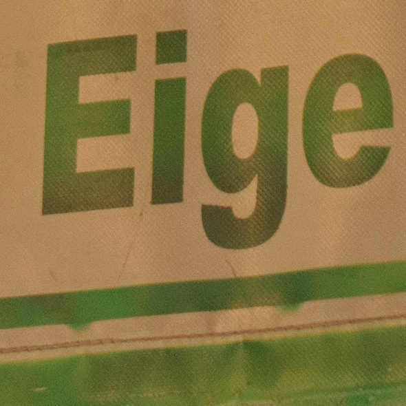 Hier jetzt ein 100% Ausschnitt. Ganz deutlich ist die Struktur des Druckes auf der Kunststofffahne erkennbar. Dieses Bild zeigt wie wichtig kurze Belichtungszeiten sind! Wer das perfekte scharfe Bild sucht, der sollte bei der D800E sehr auf kurze Belichtungszeiten achten oder eben ein Stativ verwenden!