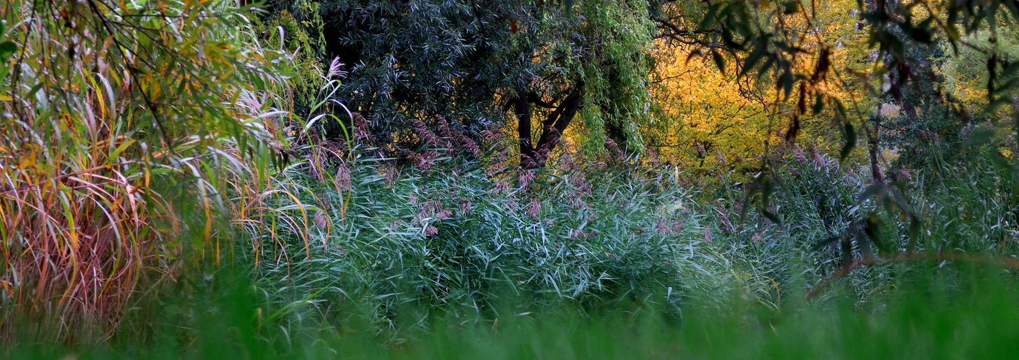 Wir sind an einem Teich und hier ist überall Schilf. Warum versuchen wir es nicht einmal mit einer Makroeinstellung, oder dem was Hersteller von Kompaktkameras als „Makro“ versprechen…