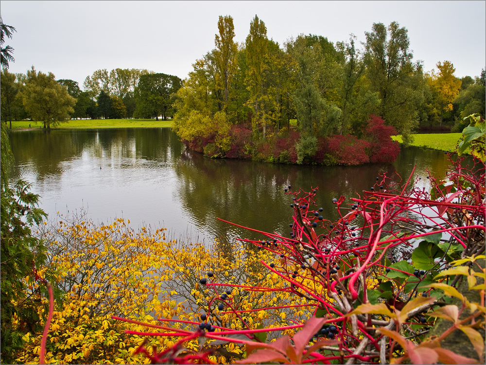 Es ist Sonntag und das Wetter ist durchwachsen. Da unsere Hirne ein wenig Sauerstoff sehr gut gebrauchen könnten entschließen wir uns zu einem kleinen Spaziergang durch den herbstlich gefärbten Bonner Rheinauen-Park. Viel Gepäck will ich nicht mitnehmen, schließlich ist das Wetter durchwachsen und wir wollen nur einen kleinen Spaziergang wagen.