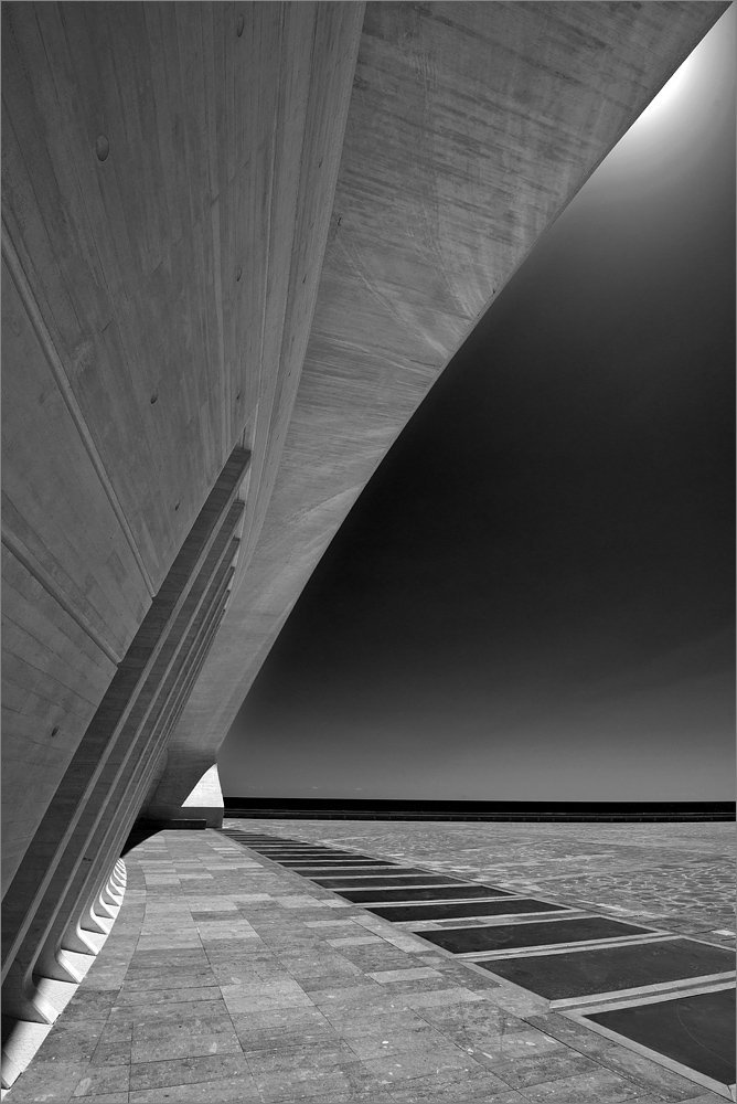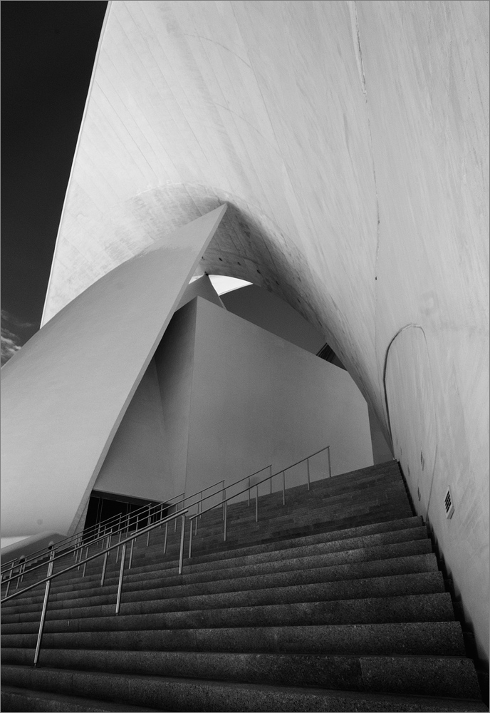 Später gibt es dann Frühstück und gegen 11h sind wir endlich startklar. Keine Ahnung warum wir morgens immer so unglaublich lange brauchen bis wir endlich startklar sind, aber wir sind ja nicht auf der Flucht sondern haben Ferien! Unser Ziel ist das Auditorio in der Hauptstadt Santa Cruz. Dieses schöne Opernhaus hat es mir angetan und ich war schon einmal dort um es zur blauen Stunde zu fotografieren. Heute will ich mal versuchen einige abstrakte Details zu finden und das Spiel aus Licht, Schatten und geschwungenen Formen mit meiner auf Infrarot 830nm umgebauten Nikon D300 festzuhalten.