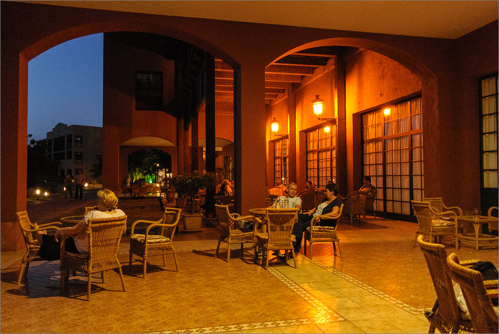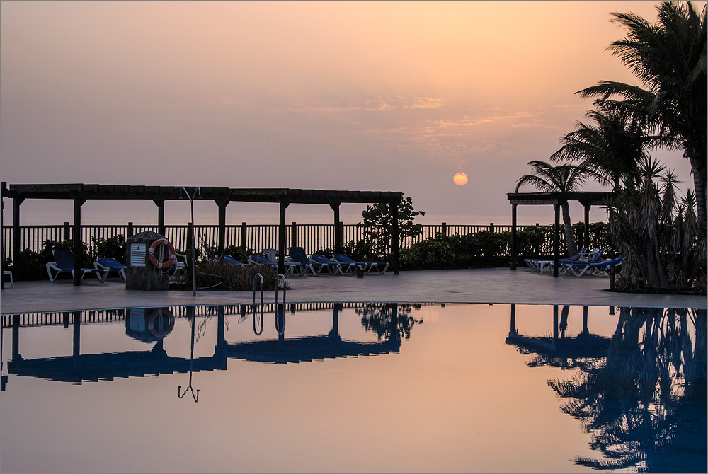 Ziemlich vollgestopft machen wir uns nach dem Essen daran die weitläufige Hotelanlage zu erkunden. Während die Sonne untergeht zücke ich immer wieder meine wunderschöne kleine Nikon 1V1. Dieses kleine Kamera ist mir in den letzten Wochen sehr ans Herz gewachsen und seit ich sie habe, bleibt die große schwere Nikon D800E mit all dem Schnickschnack meist daheim. Auch heute ist sie noch im Fotokoffer im Hotelzimmer. Aber keine Sorge, das fette Ding wird in den nächsten Tagen sicher noch zum Einsatz kommen und auch die auf Infrarot 830nm umgebaute Nikon D300 samt AF-S VR 16-85mm leistet der D800E derzeit Gesellschaft. Und wenn es gut läuft, wird es nach der Reise auch ein kleines YouTube-Video geben. Ganz heimlich freue ich mich sogar schon sehr darauf diese Reise beim Videoschnitt ein zweites Mal zu erleben und die Eindrücke via YouTube mit Euch teilen zu können.