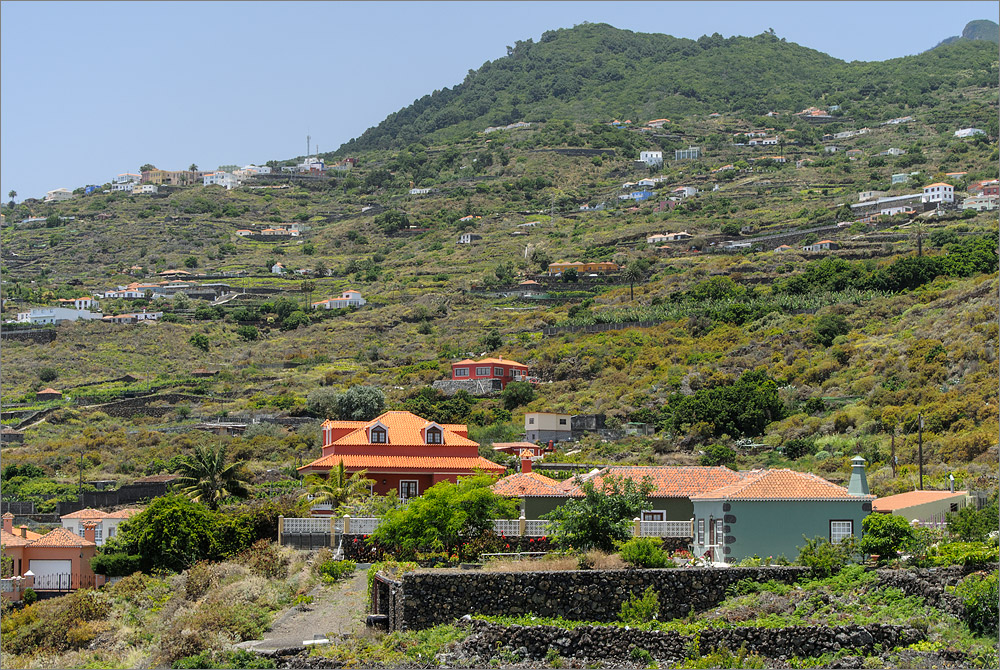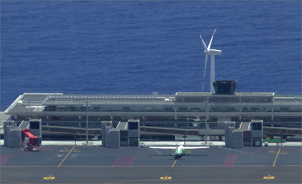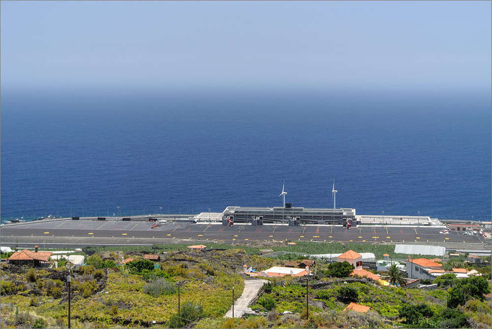 Der Flughafen von La Palma ist ein kleiner Provinzflughafen, aber alles ist trotzdem sehr modern. Zwischen all dem Sichtbeton ficht Sandra am Gepäckband den üblichen Kampf mit den rücksichtslosen anderen Fluggästen aus. Aber sie gewinnt auch heute und als ich gerade am Schalter von CICAR die Schlüssel zu unserem Mietwagen entgegen nehme steht sie schon mit einem Trolly und allen Koffern neben mir. Hier auf La Palma ist alles sehr steil und der Flughafen ist auf einem winzigen Zipfel dieser Insel angesiedelt. Das Parkhaus ist unter dem Terminal und so dauert es eine Weile bis wir unseren Mietwagen gefunden haben. Es ist wieder ein Opel Astra, diesmal ein Diesel. Auf dem Tacho stehen etwa 46.000 Kilometer. In Deutschland hätte man ihn längst gegen ein neues Exemplar ausgetauscht. Aber auf den Kanaren sind die Preise für Mietwagen deutlich geringer und damit auch die Erlöse aus der Vermietung. Für 14 Tage inkl. aller Kilometer und Versicherungen etc. kostet dieses Auto gerade einmal 261,23 Euro, das ist nicht schlecht. Und unser Opel ist in ganz ordentlichem Zustand, überhaupt ist CICAR ein Autovermieter mit dem ich noch nie schlechte Erfahrungen gemacht habe. Allerdings sollte man wissen, dass man beim AirBerlin-Partner Europcar gegen Vorlage der Bordkarte hier auf La Palma 15% Rabatt auf einen Mietwagen bekommt. Man müsste mal genau nachrechnen welcher Vermieter letztlich billiger ist.