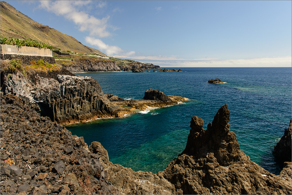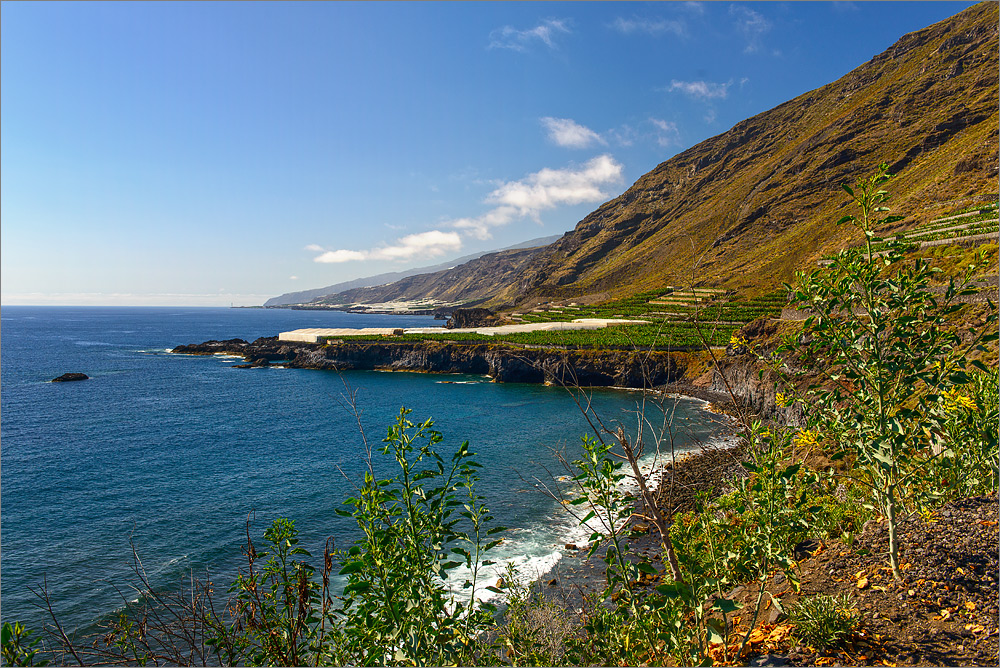 Später am Nachmittag habe ich ein wenig die Bananenplantage etwas nördlich unseres Hotels erkundet. Von dort aus hat man mit einem Teleobjektiv einen echt guten Blick rüber nach El Remo und man kann die kleinen wirklich authentischen Fischbuden dort unten am Meer sogar sehen. Dass die Fahrt mit dem Auto so lange dauert ist allerdings recht erstaunlich.