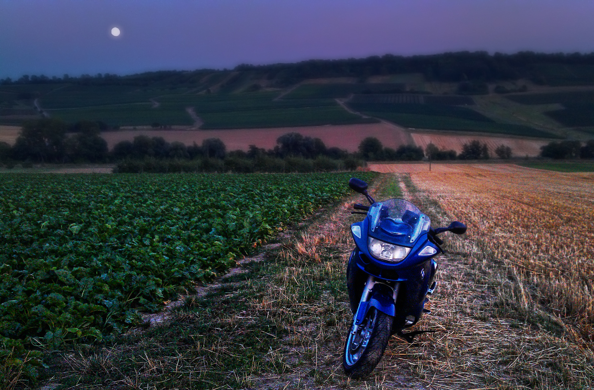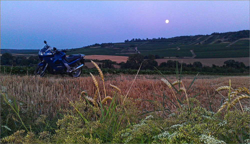 Hier noch ein etwas verfremdetes Foto meiner alten Dame mit dem Vollmond im Hintergrund. Jeder der nicht Motorrad fährt wird solche Momente nie erleben und wohl auch nicht verstehen können, dass dies für mich einer der Gründe ist warum ich so gerne Motorrad fahre. Dieses Gefühl der Ungebundenheit und der Freiheit lässt sich schwer in Worte fassen, man muss es einfach selbst erlebt haben…