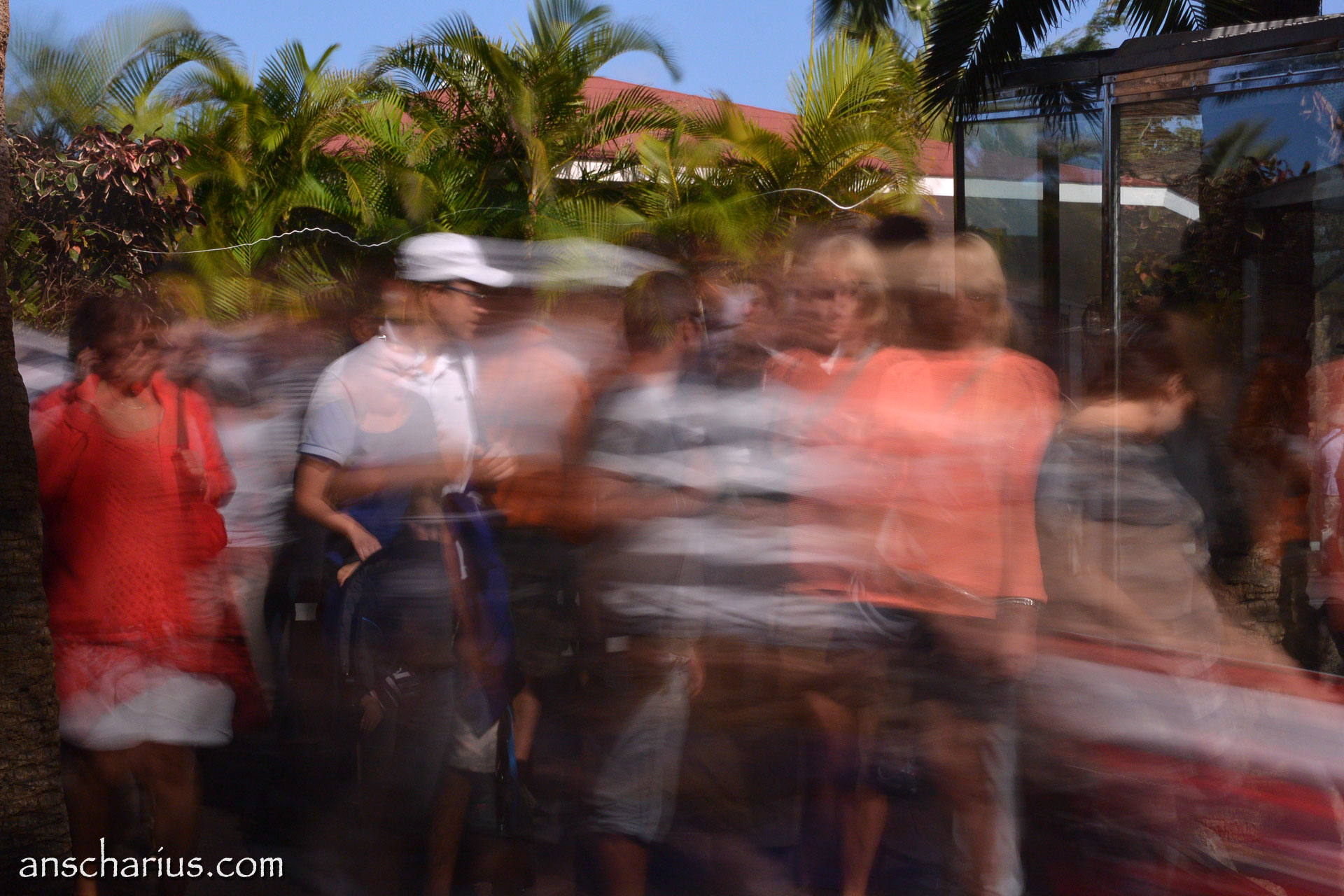 Schlucken muss ich auch als mir meine Sandra einige Minuten später offenbart, dass ich die ganze Nacht geschnarcht habe wie drei oder vielleicht auch vier Männer die in einem Sägewerk arbeiten. Wirklich geschlafen hat sie indes nicht. Den Griff zum Ohropax wollte sie nicht wagen, zu groß war die Angst zu verschlafen und sich letztlich wieder mit Heerscharen von Touristen durch den Loro Parque quetschen zu müssen. So sind wir heute echt früh dran und als wir am Loro Parque eintreffen sind sogar alle Parkplätze frei und das Tor ist noch geschlossen. Wir müssen ein paar Minuten warten und dann werden pünktlich um 8h30 die beiden großen Tore beiseite geschoben. Ich bin heute der erste Gast der ein Ticket kauft, die anderen Gäste haben entweder eine Jahreskarte oder das „Come Back Ticket“ für 10,- Euro. Weil ich beim letzten Besuch vergessen habe mir dieses Ticket ausstellen zu lassen, muss ich heute ein zweites Mal volle 33,- Euro berappen. Aber im Grunde genommen ist es für mich ok, denn ein großer Teil der Eintrittsgelder kommt hier den Tieren zugute. Nichts wäre schlimmer als wenn der Park sich nicht rentieren würde und die laufenden Kosten letztlich auf dem Rücken der Tiere gesenkt werden müssten.