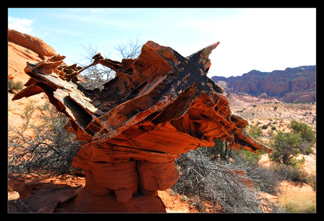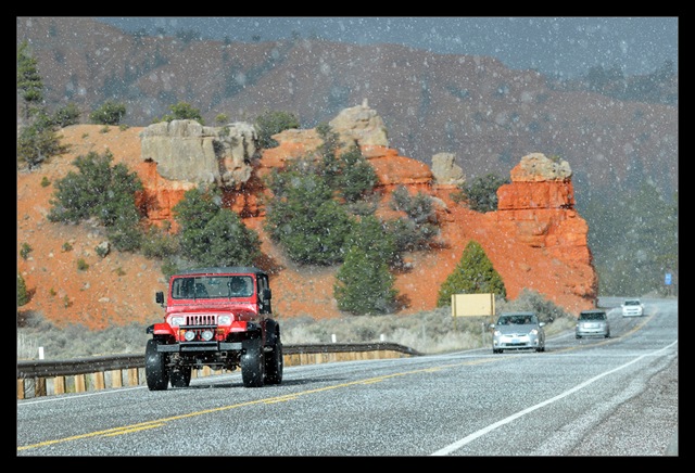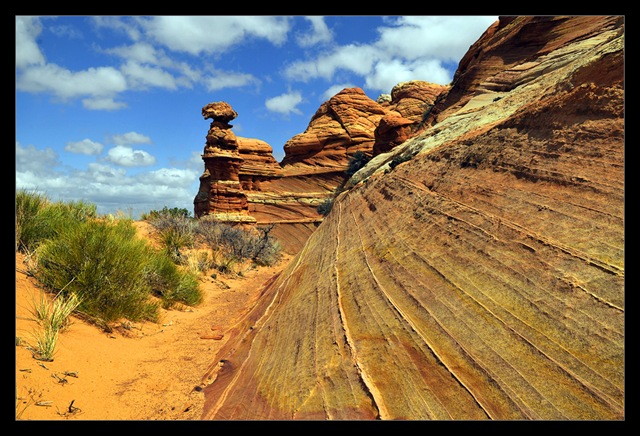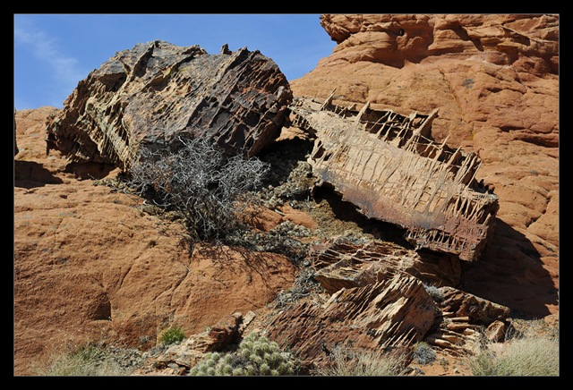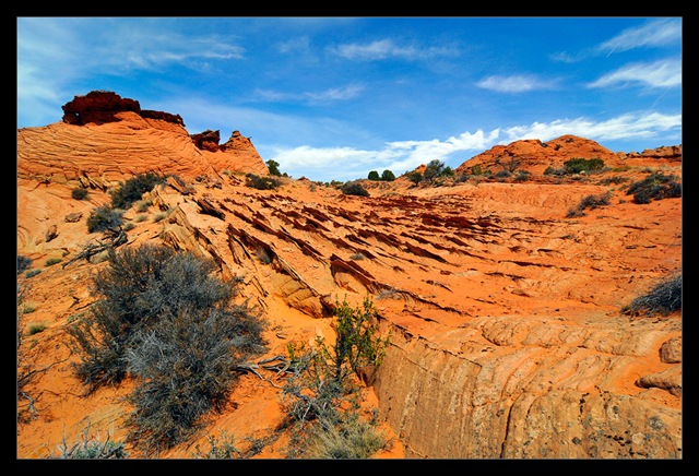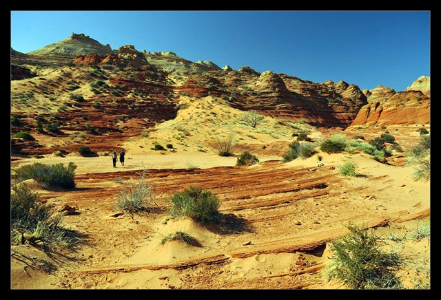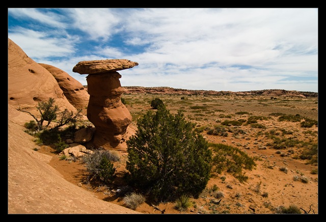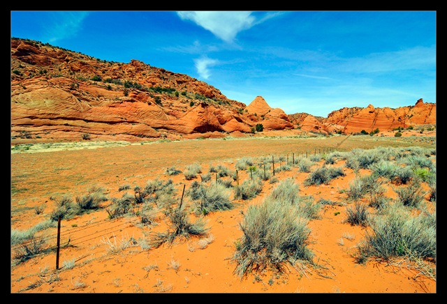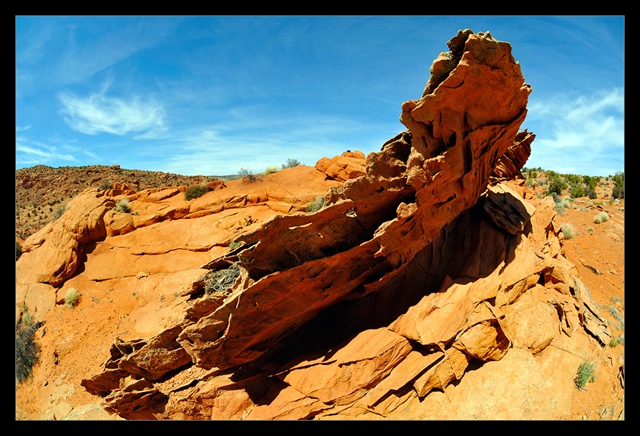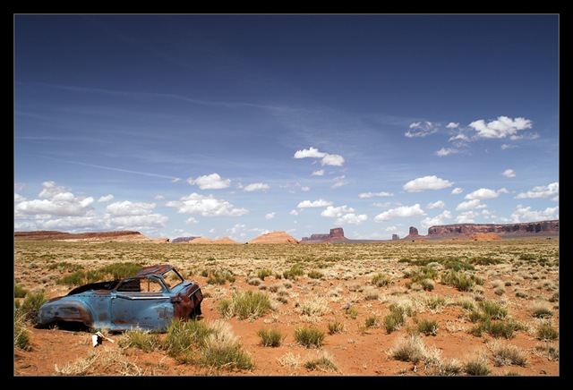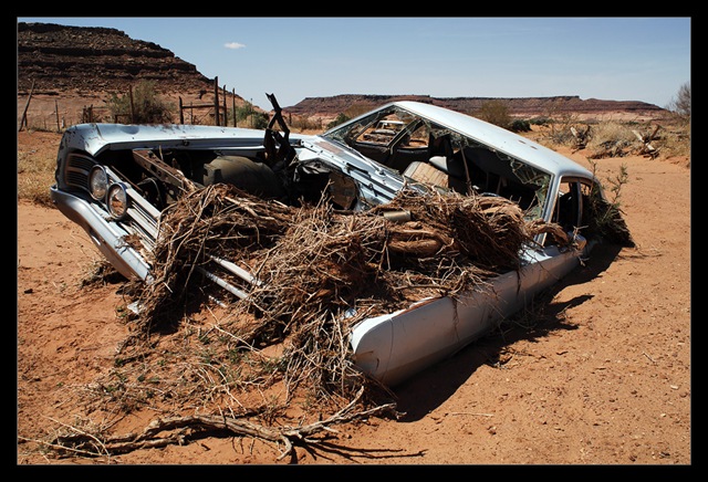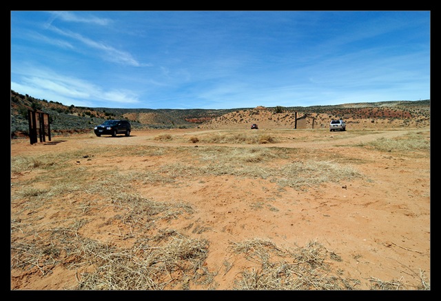 Nach eine halben Stunde tauschen wir unsere Adressen aus und dann geht es schon wieder weiter. Sandra und ich fahren einfach der Nase nach und genießen die schier endlose Weite. Dann kommt rechts der Abzweig in Richtung “The Wave” – die House-Rock-Road! Also kurz blinken und los geht der Off-Road-Spaß. Nach den ersten paar Kilometern ist das schöne neue Auto bereits komplett verhunzt…