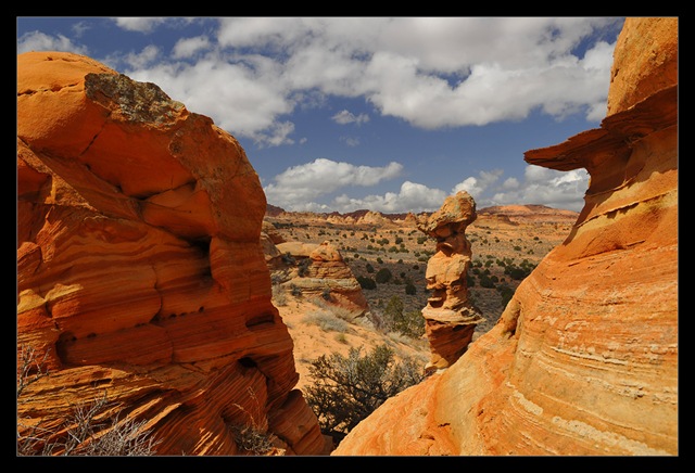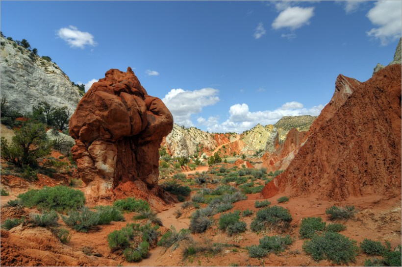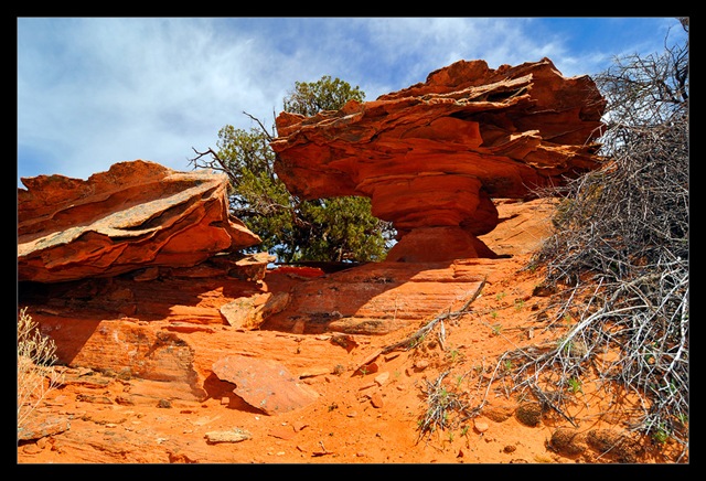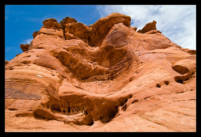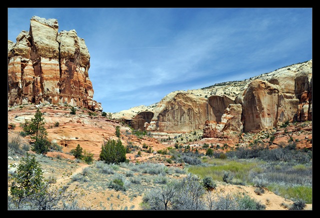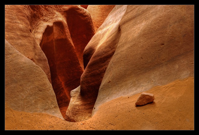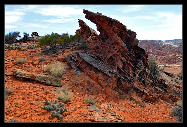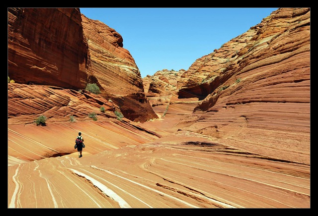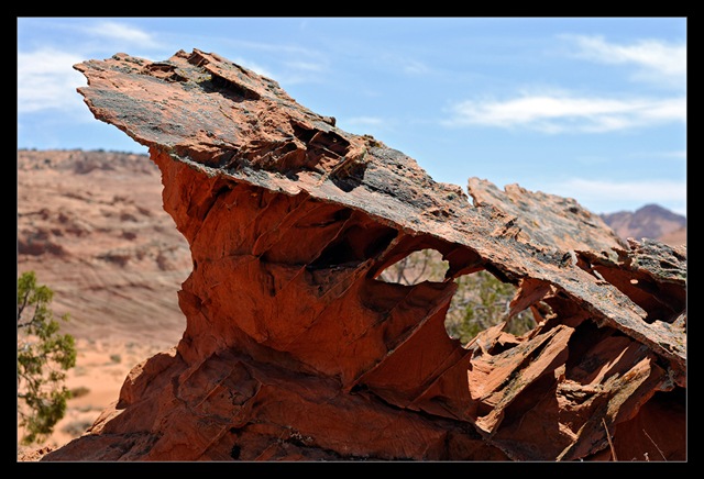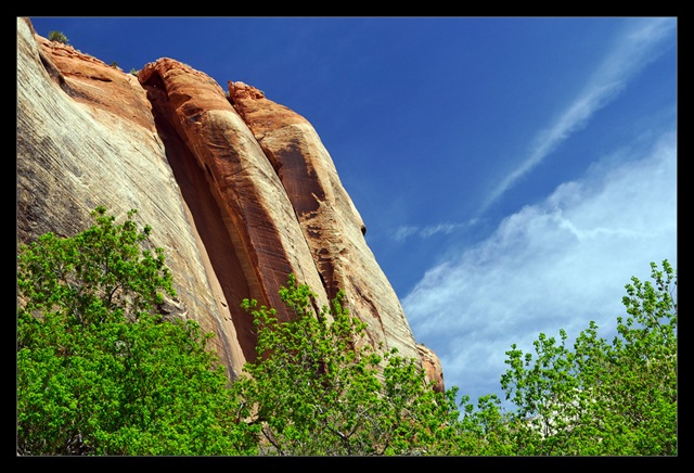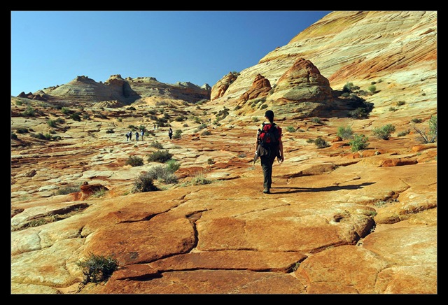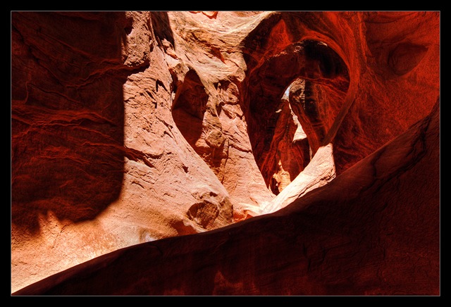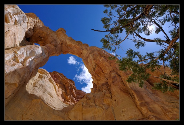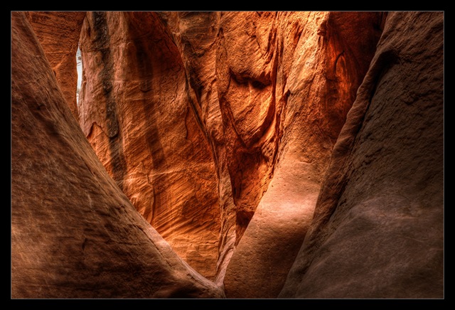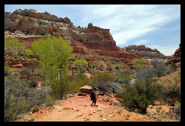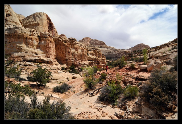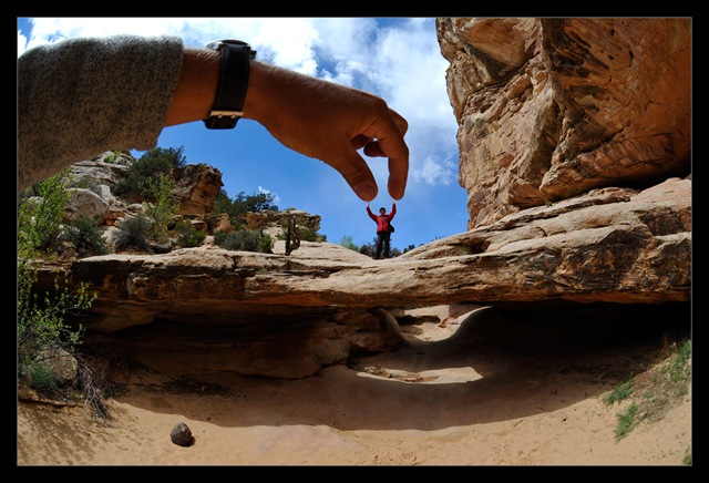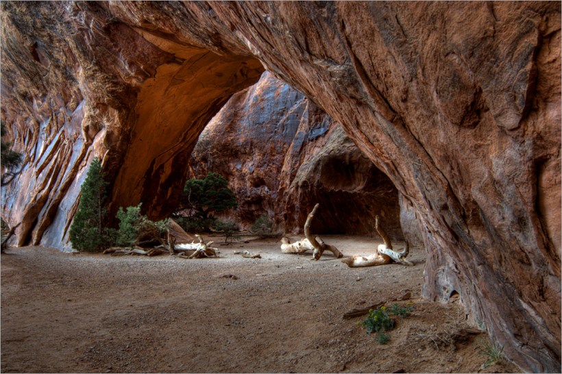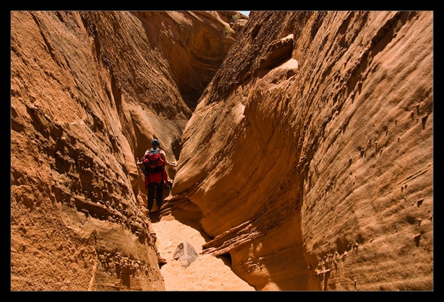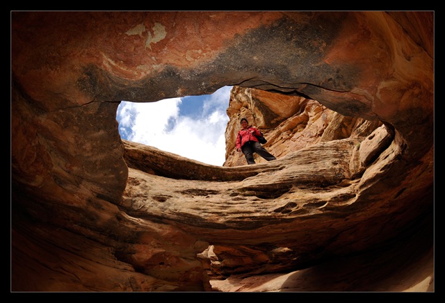 Es ist die Stelle an der die ersten Mormonen auf dem Weg nach Westen ein Jahr fest gesessen haben weil sie diesen Canyon nicht mit ihren Pferdewagen überwinden konnten. Einige Reiter sind dann umgekehrt und haben Dynamit geholt. Damit haben sie dann ein weiteres Jahr lang einen schmalen Schlitz in den gewaltigen Felsen gesprengt. Das „Hole in the Rock“ ist ein modernes Heiligtum vieler Bewohner des Südwestens und wird täglich von Mormonen aus der Umgebung besucht.
