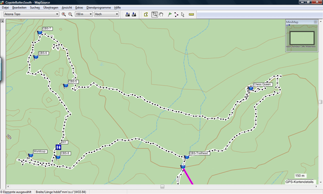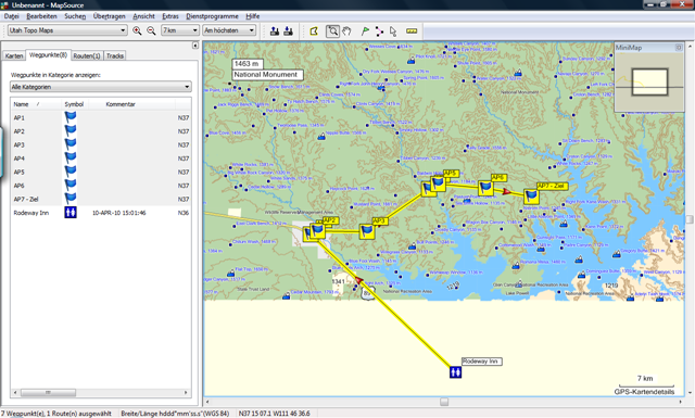 Ok, nun noch schnell alles in Mapsource überspielen, alle Wegpunkte markieren, rechte Maustaste, Route erstellen, senden an Gerät – fertig… Geht doch!