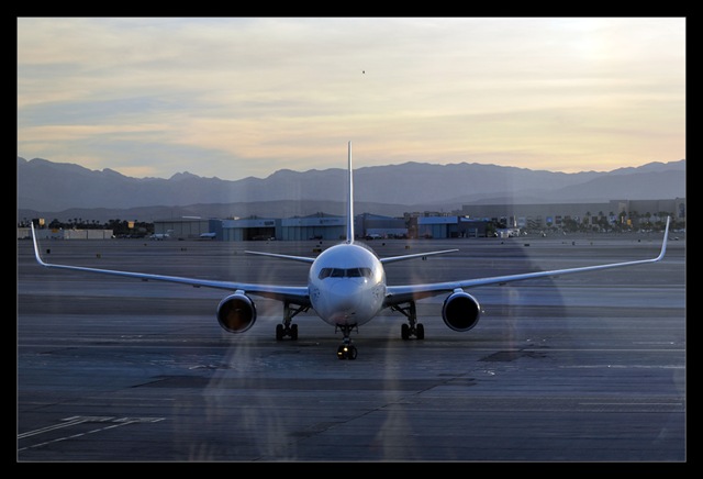 Das Frühstück war super und das Taxi ist pünktlich. “Wohin darf ich sie bringen?” “Nach Las Vegas bitte, mit einem Zwischenstopp in Frankfurt!” Der Taxifahrer grinst. Als wir im Taxi sitzen fragt er wohin er uns denn nun wirklich bringen darf. “Nach Las Vegas, das war kein Scherz!” Nach einem netten Schwätzchen über die Gepflogenheiten in Taxen und anderen Ländern ist alles gebongt und nach etwa 30 Minuten sind wir auch schon am Flughafen. Die Koffer sind ja wegen unseres Check-Ins am Vorabend bereits hier, alles ist also ganz entspannt. Wir wandern durch das Terminal. Ein Gate für unseren Abflug ist noch nicht angeschlagen. Der freundliche Herr am Condor-Schalter weiß aber genau bescheid, es ist C19. Die Passkontrolle klappt reibungslos, wir sind fast allein. Dann gibt es eine Wanderung quer durch den ganzen Flughafen. Wer nicht gut zu Fuß ist hat hier ein Problem. Dann sind wir an der Sicherheitskontrolle.