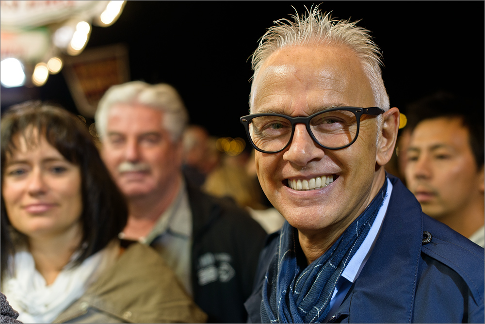 Und so sieht dieses Objektiv aus. Die Linsen sind riesig und die Verarbeitung exquisit. Das Filtergewinde beträgt 77mm, man kann locker einen 8x Graufilter aufsetzen und wegen der hohen Lichtstärke hat man immer noch ein helles Sucherbild. Besonders in Verbindung mit einem Graufilter ermöglicht dieses Objektiv große Blendenöffnungen bei hellem Licht und mäßig kurzen Belichtungszeiten. So kann man auch Outdoor mit Blitzsystemen arbeiten. Will man Blitzen, so darf die kürzeste Blitzsynchronzeit nicht unterschritten werden. Bei einer Nikon D800 kann man zudem die ISO-Empfindlichkeit auf ISO-50 absenken. Das sind die besten Voraussetzungen für schöne Portraits unter freiem Himmel, so kann man bei ISO-50, 1/250s in Verbindung mit einem Graufilter mit Blende 2,0 perfekte Portraits mit guter Schärfe in den Gesichtern und perfekter Unschärfe im Vorder- und Hintergrund erzielen.