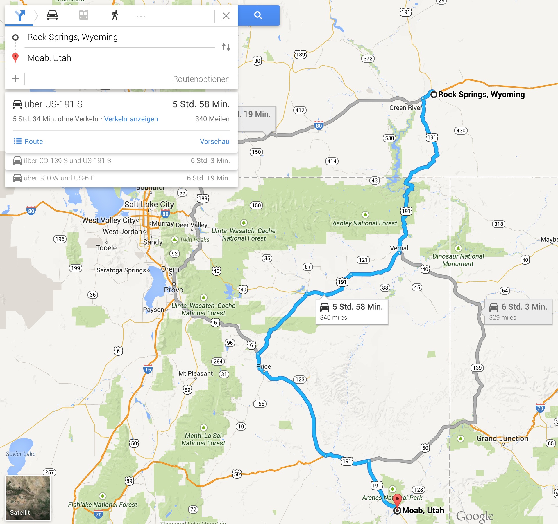 Kurz bevor wir das Städtchen Price erreichen wechseln wir und ich fahre den Rest des Weges nach Moab. Während Sandra uns durch wunderbare Schluchten, verschneite Pässe und wilde Landschaften gefahren hat, muss ich nun nur noch das Lenkrad festhalten und den Tempomaten bedienen. So kommen wir schon gegen 17h in Moab an. Im Adventure Inn bekommen wir wieder ein Zimmer. Leider ist hier gerade Hochsaison und es ist praktisch alles ausgebucht. Das letzte Zimmer das wir bekommen hat nur ein relativ kleines Bett das hier als Queen Size bezeichnet wird. Ob wird es zu zweit in diesem Bett aushalten werden? Na schauen wir mal…
