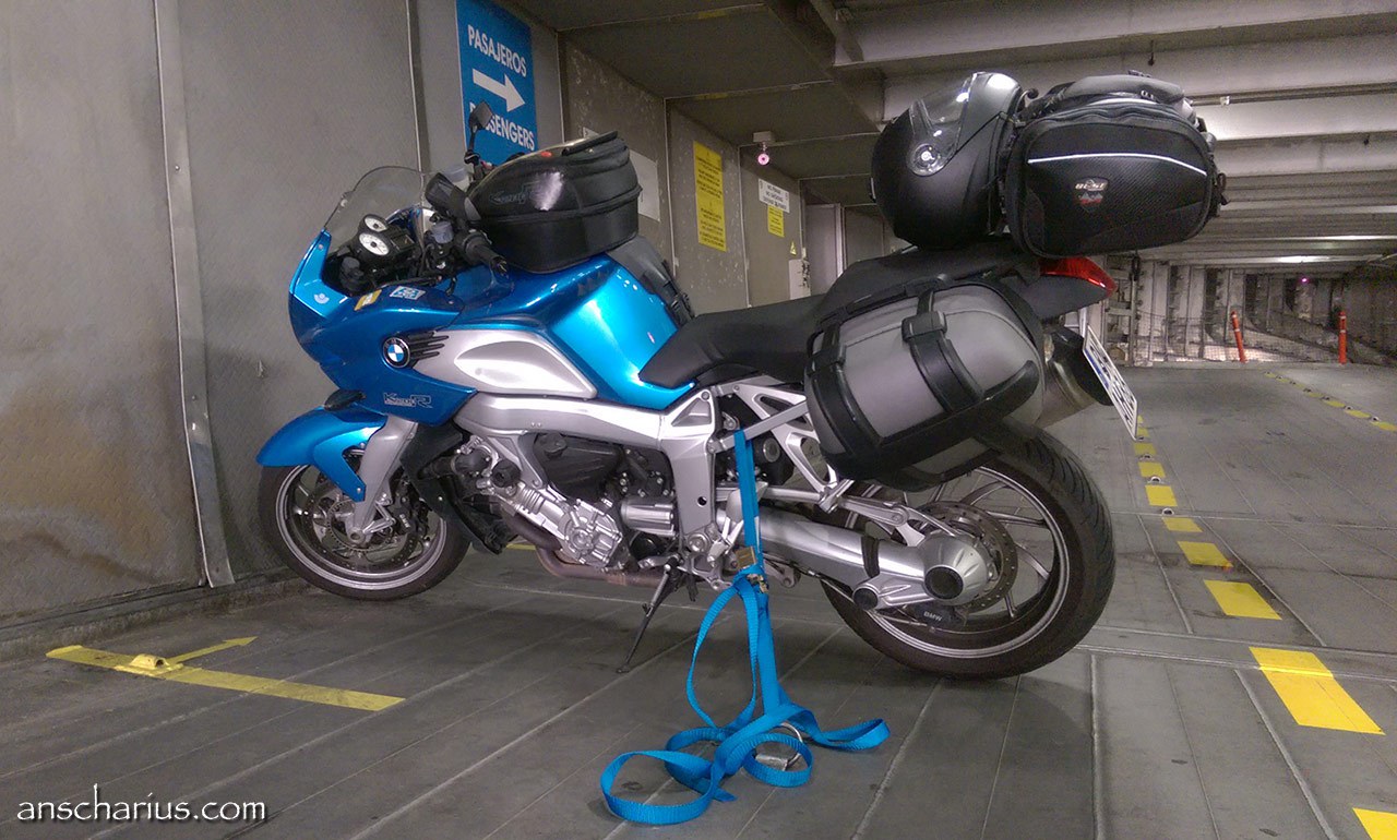 Für die Sicherung der Motorräder gibt es auf den Fährschiffen zumeist viele robuste Spanngurte. Diese sind in der Regel allerdings mit großen rostigen Haken aus Stahl bestückt. Wer sein Motorrad schonen will, sollte daher einige feste Schlaufen aus Nylon oder besser gleich zwei eigene Spanngurte aus dem heimischen Baumarkt mitbringen.
