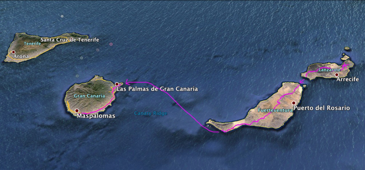 Für den Zwischenstopp auf Gran Canaria sollte man eine Übernachtung einrechnen und unbedingt ein Zimmer in der Nähe des Hafens buchen. Hotels gibt es reichlich, aber es kann vorkommen, dass einfach alles ausgebucht ist. Mit Schrecken erinnere ich mich an den Tag als ich stundenlang in der Dunkelheit mit meinem Motorrad von einem Hotel zum nächsten geirrt bin. Das war nicht witzig und das Hotel das ich letztlich fand, war etwa 80 Kilometer vom Hafen entfernt.