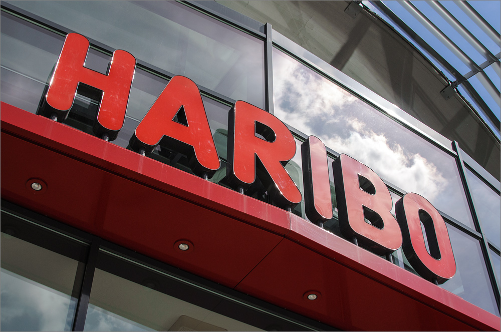 Hier der Klassiker – HAns RIgel BOnn -> HARIBO – dieser Schriftzug ziert noch heute das Dach einer der ersten Betriebssporthallen auf deutschem Grund und Boden!