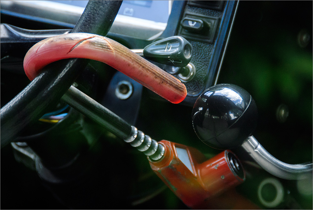 Gleich gegenüber steht ein uralter Citroen 2CV – eine Ente! Beim Blick in das „Cockpit“ bin ich überrascht wie sehr der Besitzer dieses alte Fahrzeug gegen potentielle Autodiebe gesichert hat. Ohne eine ISO-Automatik könnte man Fotos wie dieses nicht freihändig realisieren. Und auch wenn ich die ISO-Automatik nicht mag und sie von vielen anderen Fotografen regelrecht verteufelt wird, manchmal ist sie tatsächlich sehr hilfreich 🙂