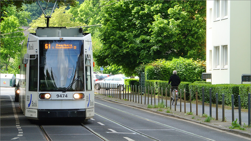 Nachdem Sandra hinter der nächsten Kurve verschwunden ist nehme ich mir einen Augenblick um alle Einstellungen der Nikon 1 V1 zu checken. Danach mache ich mich zu Fuß auf den Weg nach Hause. Vorbei an der HARIBO-Zentrale und der Sportanlage Wasserland bin ich mit meiner winzigen Kamera und dem 540mm Supertele (200mm x 2,7) auf der Suche nach Motiven.